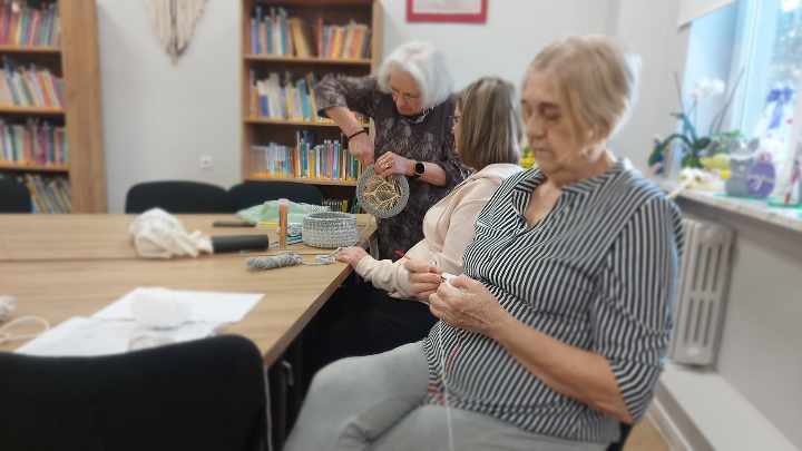 Teraz nadszedł czas na wyszydełkowanie czegoś dla siebie. Uczestniczki kwietniowych spotkań miały okazję nauczyć się tworzenia koszyków ze sznurka. Powstało wiele oryginalnych wzorów i ciekawych ozdób, które nadały niepowtarzalny charakter każdej z prac. Podczas szydełkowania narodziły się nowe pomysły , które będziemy realizować w następnym miesiącu.