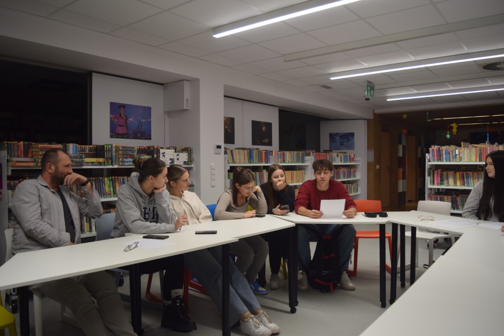Praca nad historiami była pełna śmiechu, zaangażowania i wymiany pomysłów. Atmosfera w bibliotece była niezwykle twórcza – między regałami z książkami powstawały opowieści o tajemniczych odkryciach, magicznych księgach i niezwykłych wydarzeniach, które mogłyby przydarzyć się tylko w bibliotece. Każda grupa wykazała się pomysłowością. W swoich opowiadaniach uczestnicy doskonale wczuli się w role literackich postaci, w które wcielili się podczas sesji zdjęciowej. Zespoły wykazały się nie tylko kreatywnością, ale również umiejętnością współpracy i korzystania z przypadkowych wskazówek, które dostarczyły im kostki. Na zakończenie wszystkie opowiadania zostały odczytane przed publicznością. Jury miało trudne zadanie, by wyłonić zwycięzców – każda historia była wyjątkowa. Uczestnicy udowodnili, że biblioteka to nie tylko miejsce pełne książek, ale także przestrzeń, gdzie wyobraźnia nie ma granic. Decyzją jury, z trzech prac powstało jedno opowiadanie pt. "Literacki galimatias".