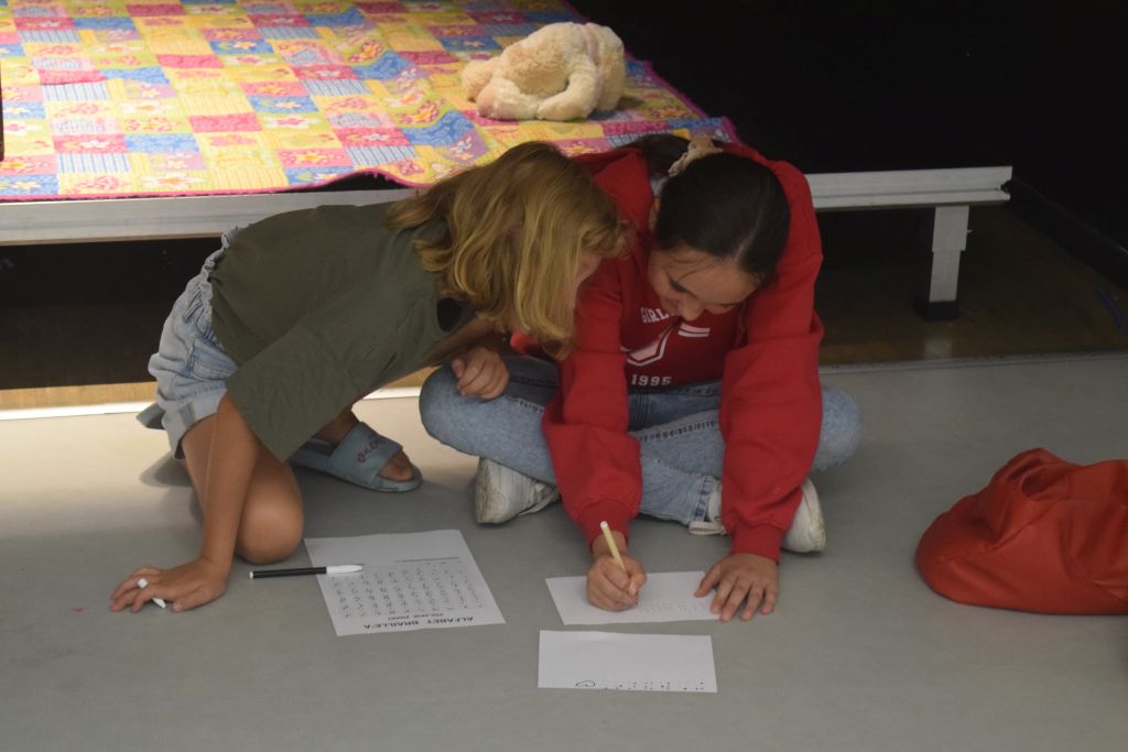 Zajęcia rozpoczęliśmy od zabaw ruchowych. Ważną częścią dzisiejszego spotkania było wprowadzenie dzieci w świat osób niewidomych. Książka "Czarna książka kolorów" przedstawia historię Tomka - niewidomego chłopca, który pomimo swojej niepełnosprawności potrafi opisać kolory poprzez inne zmysły. Po wysłuchaniu historii, uczestnicy mieli okazję spróbować odczytać litery i obrazki z książki za pomocą dotyku, wyobrazić sobie świat Tomka, a także starali się wczuć w sytuację osób niewidomych poprzez rozpoznawanie przedmiotów za pomocą dotyku. Na zakończenie każde z dzieci używając wcześniej poznanego alfabetu Braille’a, miało za zadnie napisać swoje imię.