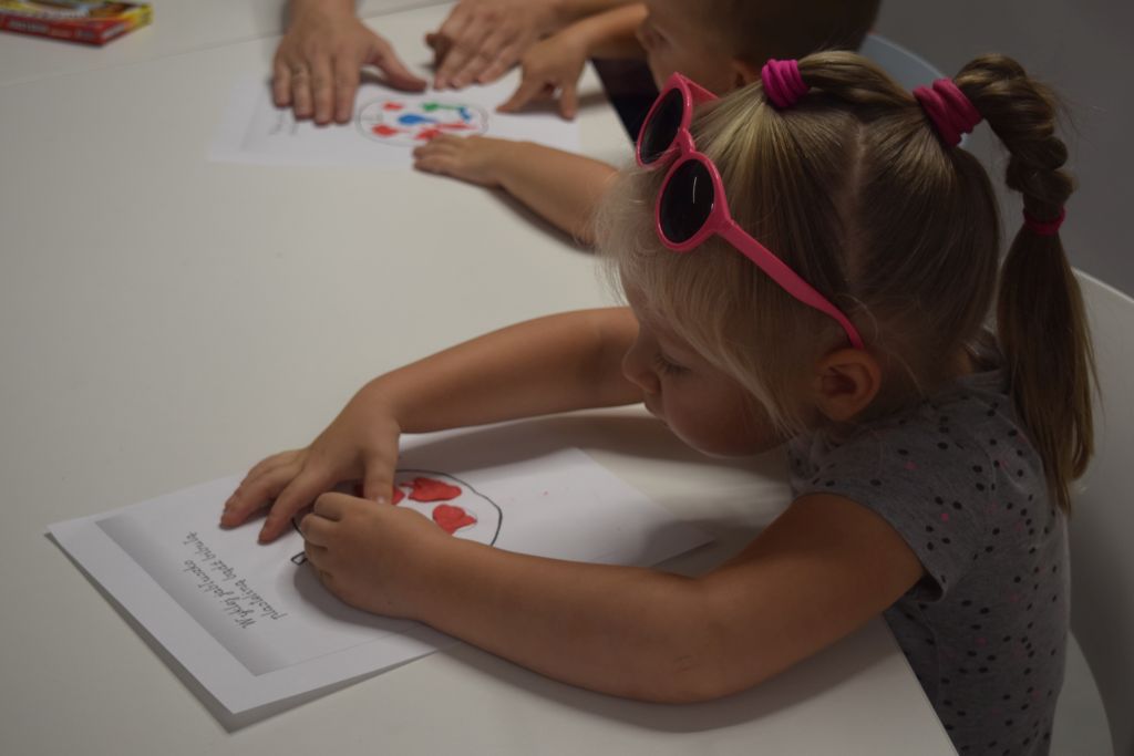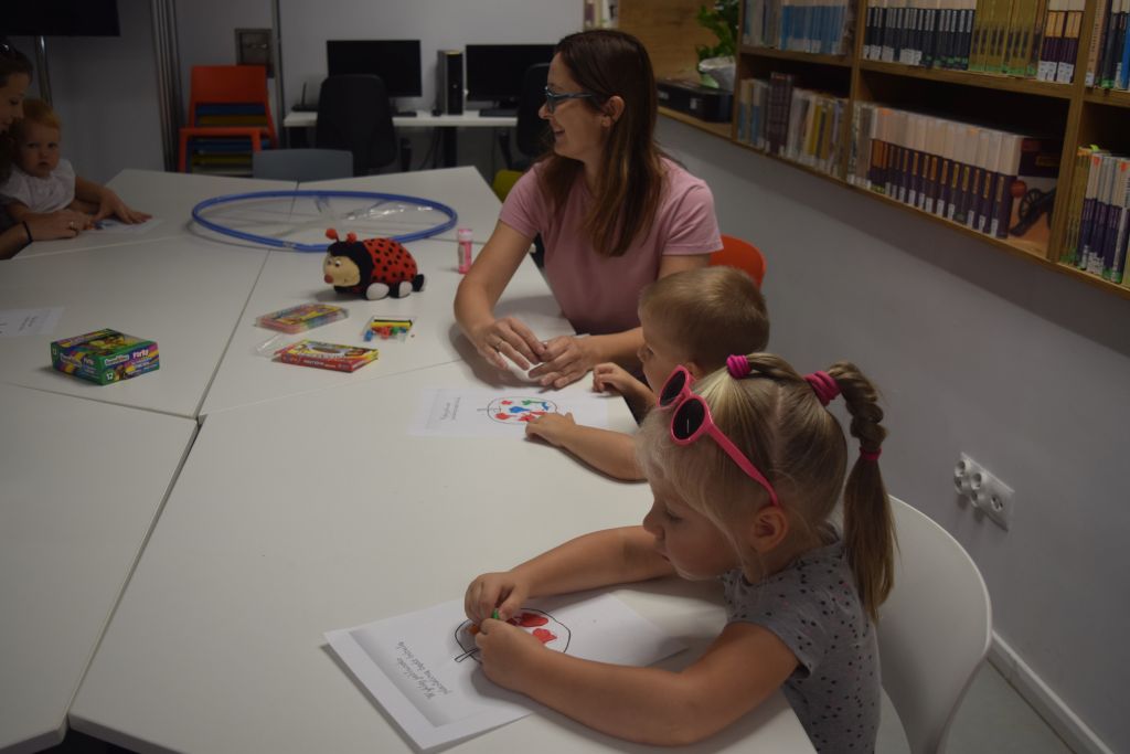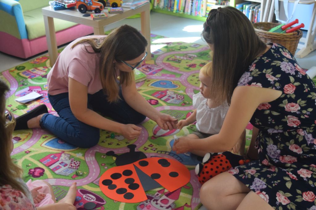 Na początku dzieci wysłuchały książeczki sensorycznej z serii "Dotykam, poznaję: Łąka’". Następnie dzieci ozdabiały biedronkę naklejając jej kropki. Nie zabrakło wesołej zabawy z użyciem chusty animacyjnej. Maluszki przebiegały pod nią oraz wachlowały góra- dół. Wykonały pracę plastyczną z użyciem plasteliny. Dodatkową atrakcją były bańki mydlane.