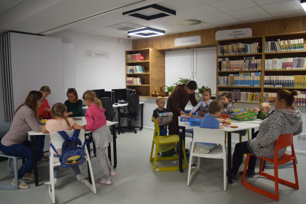 Tego dnia do udziału w warsztatach międzypokoleniowych pt. "Rodzina to drużyna" zaprosiliśmy dzieci oraz rodziców. Motywem przewodnim była jesień. Zajęcia rozpoczęliśmy od zabaw ruchowych z użyciem chusty animacyjnej oraz wieży liderów. Wśród atrakcji nie zabrakło zabawy w kalambury. Odbył się również quiz rodzinny, który sprawdzał wspólne zainteresowania. Dzieci i rodzice odpowiadali na wiele interesujących i zabawnych pytań, które wywołały wiele uśmiechu i radości. Na zakończenie warsztatów uczestnicy ćwiczyli spostrzegawczość i skupienie uwagi. Wzięli udział w rozgrywkach gier planszowych tj .memory, rach - ciach, 5 sekund, Ubongo oraz Skubane kurczaki.