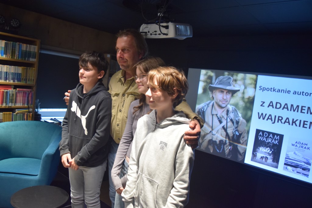 Zaproszenie Biblioteki przyjął długo oczekiwany przez nas Adam Wajrak. Nasz Gość na co dzień mieszka we wsi Teremiski w Puszczy Białowieskiej.