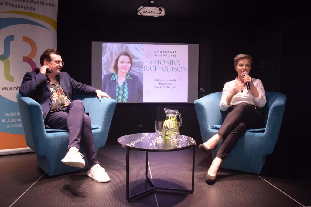 Autorka i współautorka książek, ”Moja Europa da się lubić”, ”Pożegnanie z Anglią”, ”Polki na bursztynowym szlaku”(, wspólnie z Lidią Popiel zostały ambasadorkami bursztynu), ”Kuchnia kobiet”, ”Lubię być Polakiem” prowadząca program ”Europa da się lubić”, redaktorka naczelna „Zwierciadła” Monika Richardson była Gościem biblioteki.