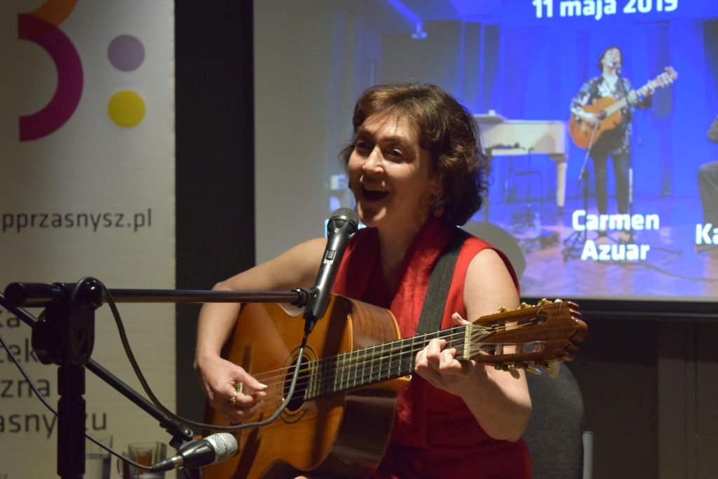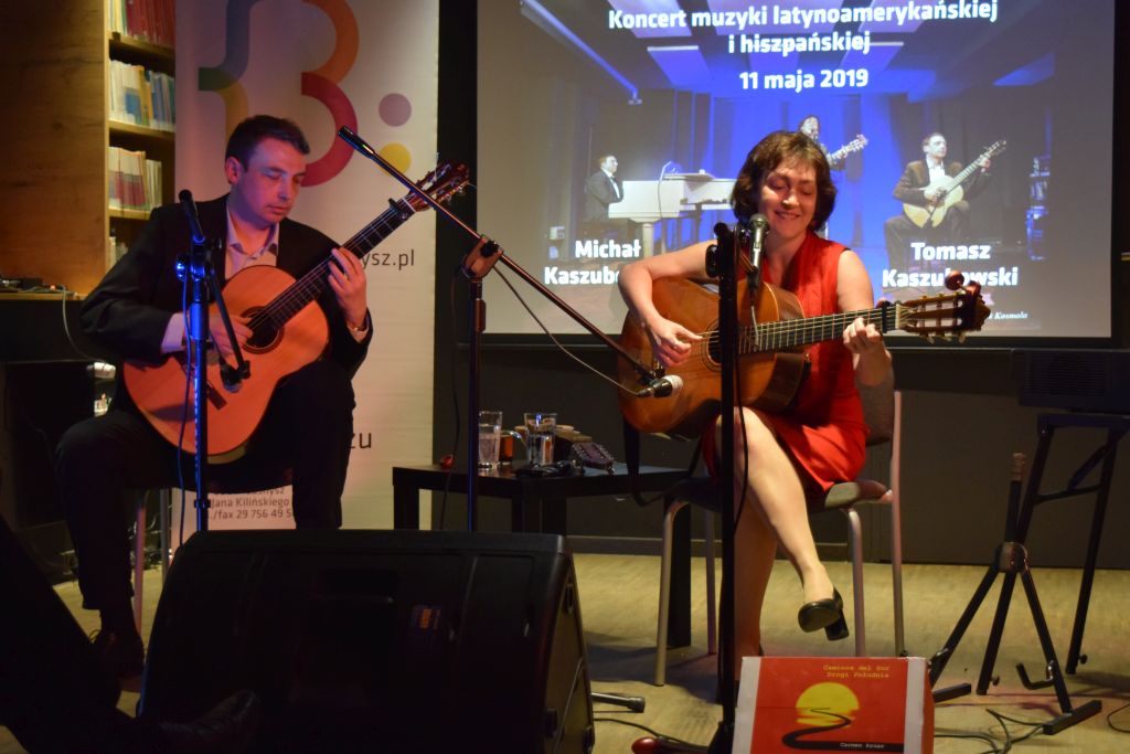W sobotę 11 maja w siedzibie MBP odbył się koncert muzyki latynoamerykańskiej i hiszpańskiej w wykonaniu Carmen Azuar, Tomasza Kaszubowskiego oraz Michała Kaszubowskiego.