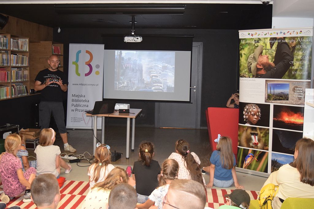 W kolejnym dniu Wakacji z Biblioteką wyruszyliśmy w podróż do Afryki. Dzięki Panu Robertowi Gondkowi, który jest podróżnikiem i fotografem zobaczyliśmy niezwykłe miejsca, zwierzęta oraz szczyty tego kontynentu.