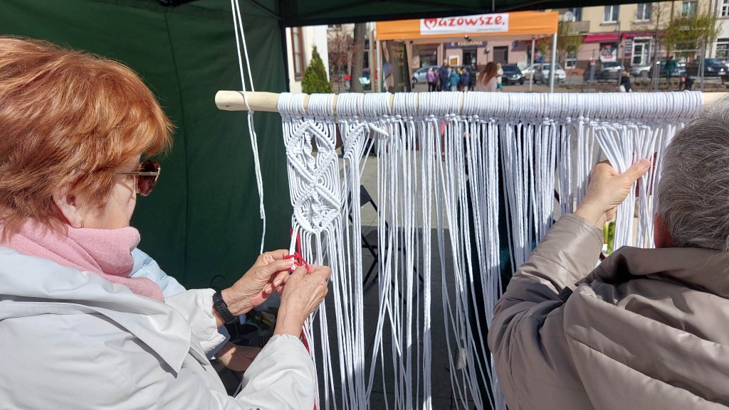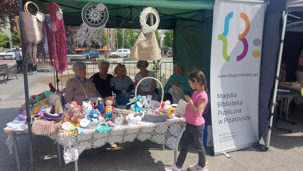 1Kolejne warsztaty w Klubie Rękodzieła "Biblioteka pod szpileczką" za nami! Maj rozpoczęliśmy od wspólnego wyplatania biało-czerwonej flagi, która następnie została wystawiona na licytację, aby wesprzeć zbiórkę środków na zakup windy dla Rafała Olszewskiego z Przasnysza.  Podczas czterech, cotygodniowych spotkań powstało także bardzo wiele kolorowych breloków i makramowych laleczek, które można było wylosować w loterii na IX Przasnyskim Jarmarku Staropolskim. Mieszkańcy Przasnysza i przybyli goście mieli okazję zobaczyć na własne oczy piękne wytwory rąk zdolnych członkiń Klubu.