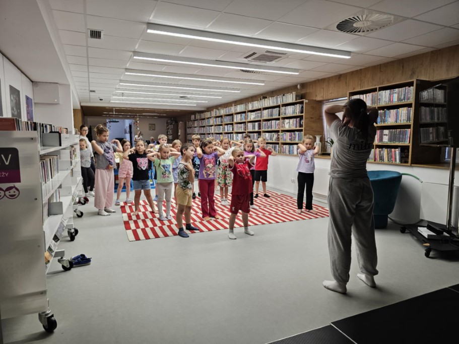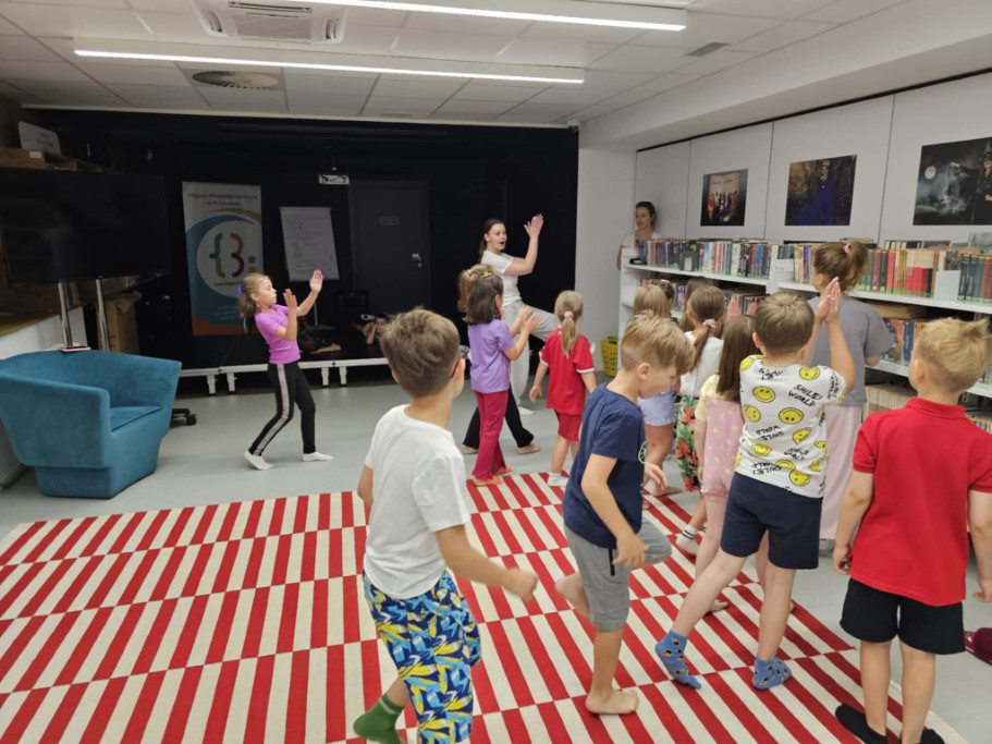 Główną atrakcją dnia były zajęcia taneczne prowadzone przez Michalinę Wasiak z „Miłego Studia Tańca”. Pod jej okiem uczestnicy uczyli się ciekawego układu choreograficznego, który łączył elementy tańca nowoczesnego i zabawy ruchowej. Dzięki energii i zaangażowaniu prowadzącej, wszyscy chętnie brali udział w ćwiczeniach – nawet ci, którzy na początku podchodzili do tańca z rezerwą. Zajęcia sprawiły dzieciom mnóstwo radości, pozwalając im się wyszaleć, rozruszać i poczuć rytm wakacyjnej beztroski.