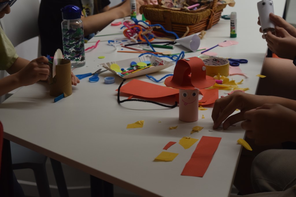 Zajęcia rozpoczęliśmy od zabaw ruchowych. Następnie dzieci rozwiązywały quiz o kosmosie, który był podsumowaniem poznanej wiedzy. Następnie wykonali pracę plastyczną, kosmitów z rolek po papierze toaletowym. W części głównej dzieci poznały nasze biblioteczne roboty: Photona i Ozobota. Photon jest to polski robot edukacyjny, którego zadaniem jest wprowadzenie użytkowników w świat nowych technologii. Dzieci miały za zadanie zaprogramować roboty w ten sposób, aby przejechały po wyznaczonej drodze. Natomiast Ozoboty odpowiednio zakodowane poruszały się po wytyczonej trasie z puzzli, którą dzieci wcześniej sami projektowali.