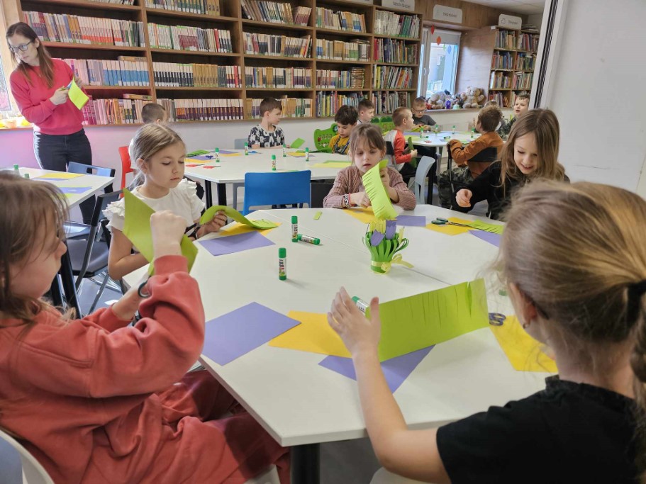 W dniu dzisiejszym w Oddziale dla Dzieci i Młodzieży odbyły się warsztaty z okazji zbliżającego się Dnia Kobiet. Na zajęciach gościliśmy klasę II ze Szkoły Podstawowej nr 2 w Przasnyszu. Na początku dzieci wzięły udział w quzie dotyczącym zarówno tego święta jak i kobiet. Podczas zajęć powstały piękne wiosenne wiązanki, które uczniowie zabrali ze sobą i wręczą wybranym kobietkom.