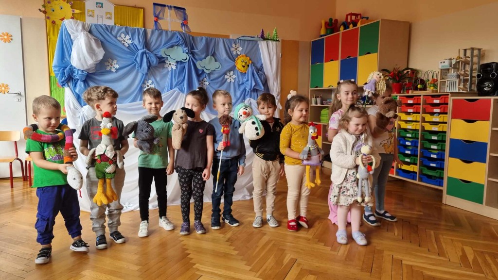 W Miejskim Przedszkolu nr 1 im. Marii Kownackiej odbyło się niezwykłe przedstawienie pacynkowe pt. "Miś Uszatek", przygotowane przez Panie z Klubu Rękodzieła "Biblioteka pod Szpileczką" działającego przy Filii nr 1 Miejskiej Biblioteki Publicznej w Przasnyszu. Mali widzowie mieli okazję obejrzeć trzy urocze bajki: "Przyjaciele", "Mróz" oraz "Bałwanek", w których sympatyczny Miś Uszatek wraz z przyjaciółmi przeżywał zimowe przygody. W przedstawieniu uczestniczyły wszystkie dzieci z całego przedszkola, które z ogromnym zaangażowaniem śledziły losy bohaterów. Przedszkolaki nie tylko oglądały teatrzyk, ale także aktywnie włączyły się do wspólnej zabawy – na zakończenie wszyscy zaśpiewali znaną i lubianą piosenkę o Misiu Uszatku. Dzięki niezwykłemu zaangażowaniu Pań z Klubu Rękodzieła i ich pięknie wykonanym pacynkom, dzieci mogły przenieść się w magiczny świat bajek, pełen ciepła, przyjaźni i zimowych przygód. Mamy nadzieję, że to wydarzenie na długo pozostanie w ich pamięci!