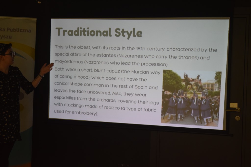 Za nami kolejne spotkanie w ramach cyklicznej Kawiarenki Językowej. W czwartkowe popołudnie 24. kwietnia mieliśmy idealną okazję, by dzięki wolontariuszce Maddie poznać mnóstwo szczegółowych informacji o tradycyjnych hiszpańskich obchodach Wielkanocy, procesjach Wielkiego Tygodnia oraz następującego po nich kwietnego Festiwalu Wiosny. To ostatnie wydarzenie, unikatowe dla prowincji Murcja pod nazwą "Bando de la Huerta", począwszy od połowy XIX wieku corocznie obfituje w okolicznościowe parady osób noszących charakterystyczne lokalne stroje. Podkreśleniu przywiązania do rodzinnego regionu i jego folkloru służą liczne inne festiwalowe atrakcje, wśród których można wymienić choćby wybór Miss Sadu - będącej później krajową ambasadorką kultury Murcji - czy humorystyczny w swym wyrazie tzw. Pogrzeb Sardynki. Serdecznie dziękujemy za udział w kawiarence przybyłym zainteresowanym. Zapraszamy wszystkich chętnych na kolejne spotkanie z ciekawymi konwersacjami w języku angielskim, naturalnie bez ograniczeń wiekowych :) Do zobaczenia już w maju :)