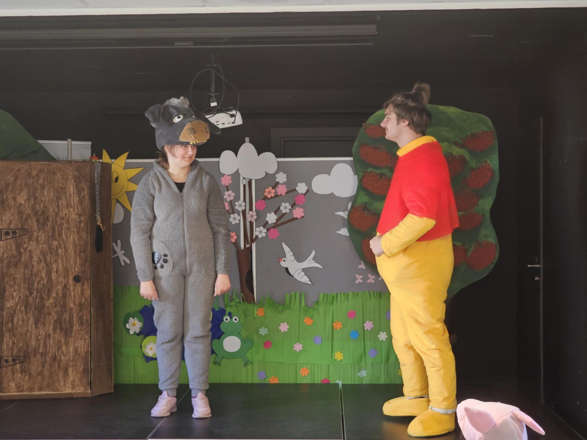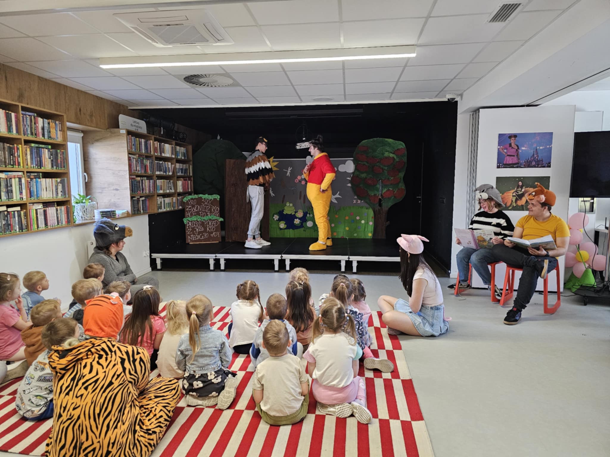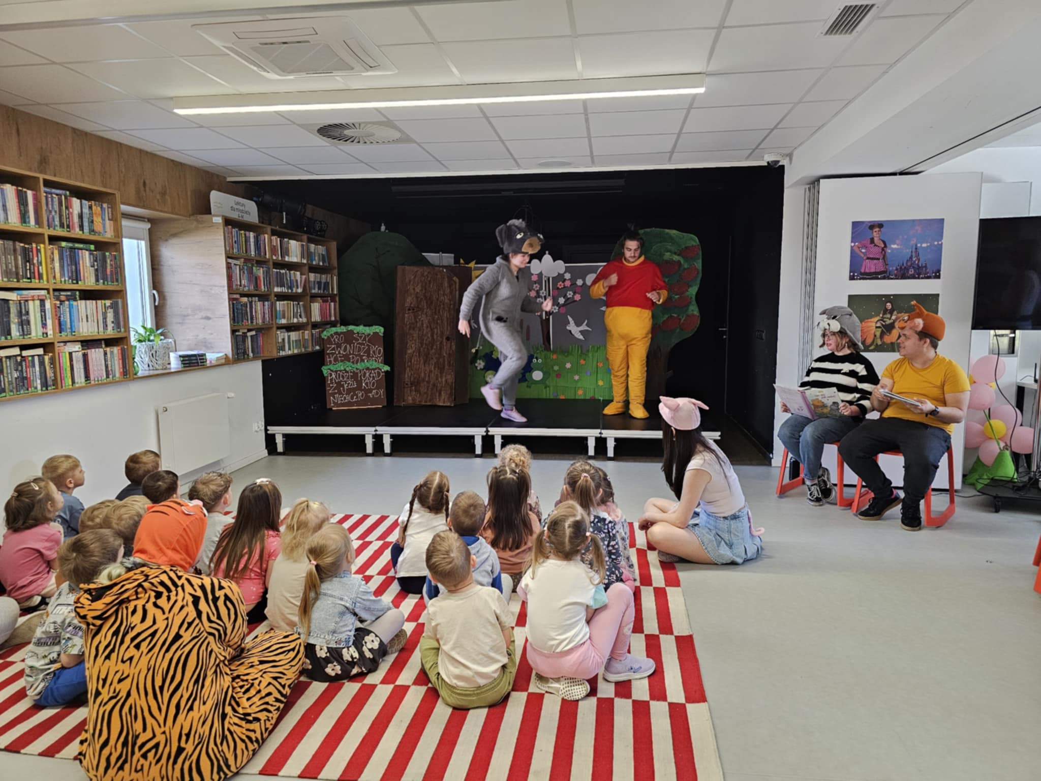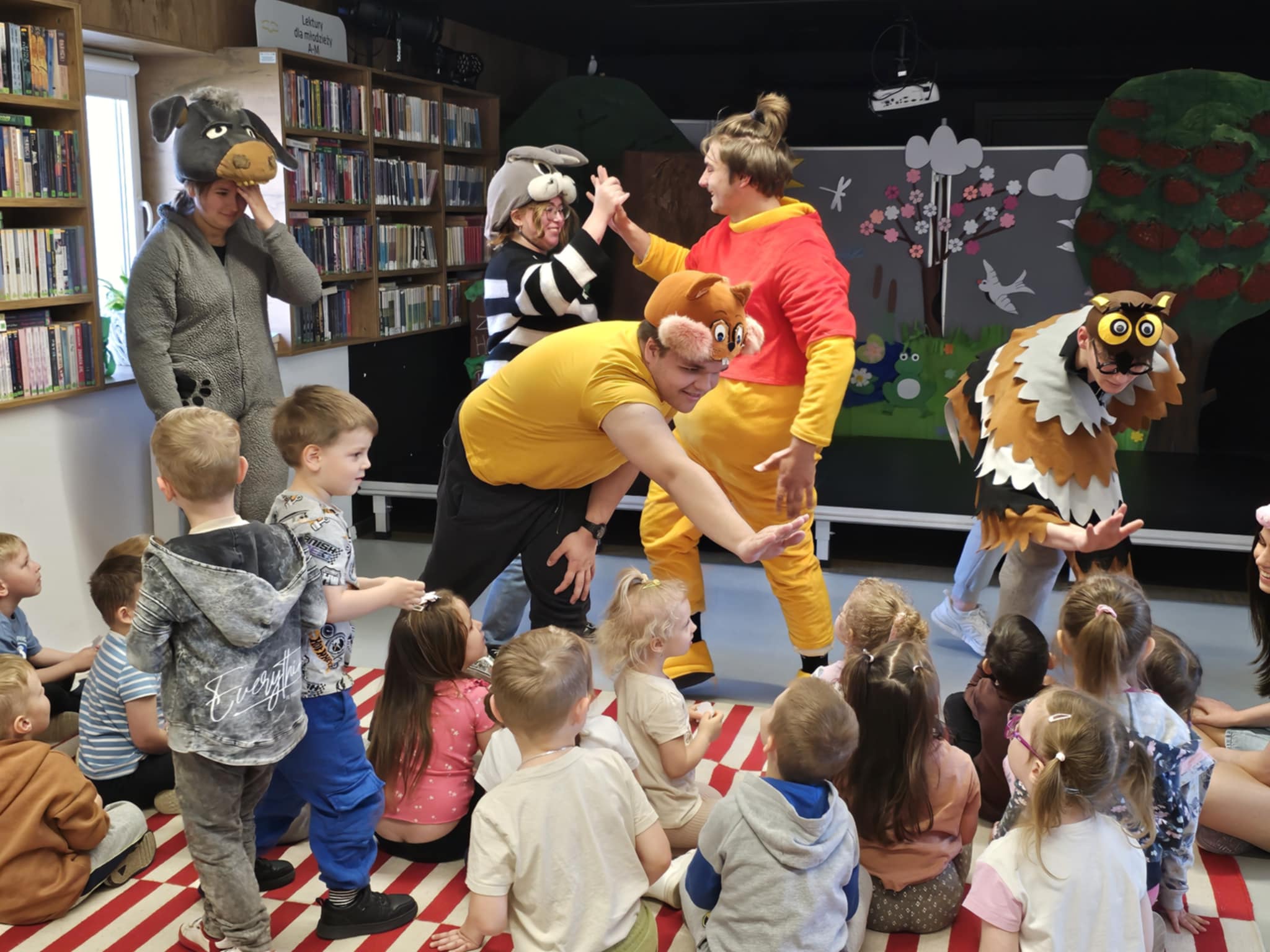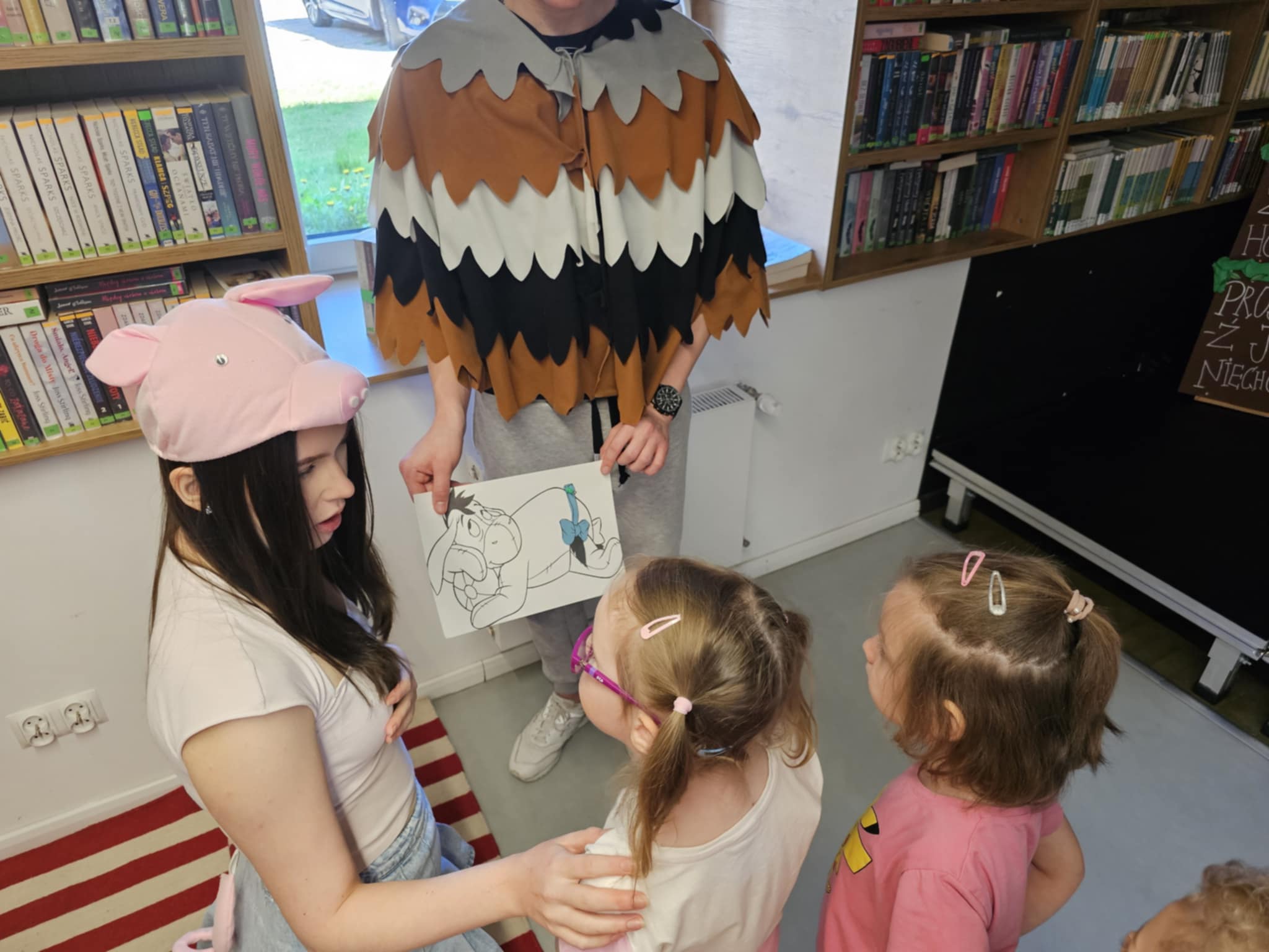 Dziś w Miejskiej Bibliotece miało miejsce wydarzenie przygotowane przez grupę czytelniczo – teatralną działającą w Zespole Szkół Powiatowych im. mjra H. Sucharskiego, którą prowadzi Pani Monika Głodkowska. Młodzież przygotowała dla przedszkolaków z Przedszkola nr 1 bajkową niespodziankę – spektakl o przygodach Misia Puchatka i jego przyjaciół: Kłapouchego, Tygryska, Królika, Sowy Przemądrzałej i Prosiaczka.