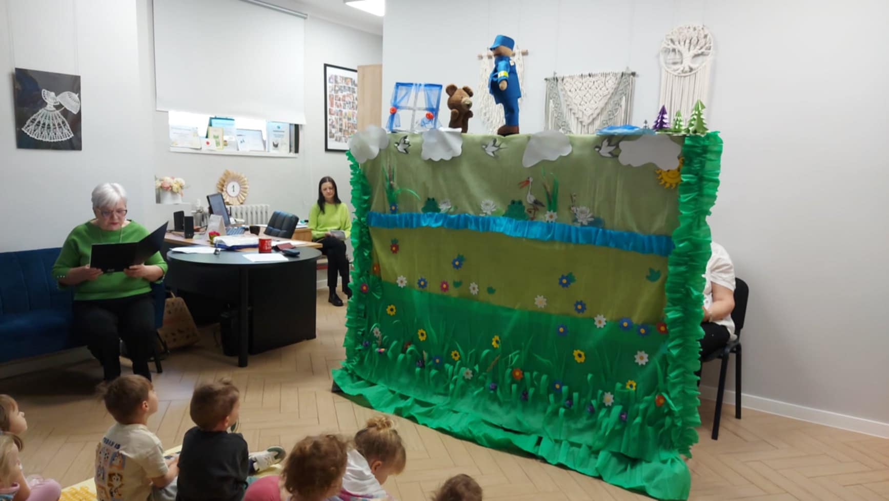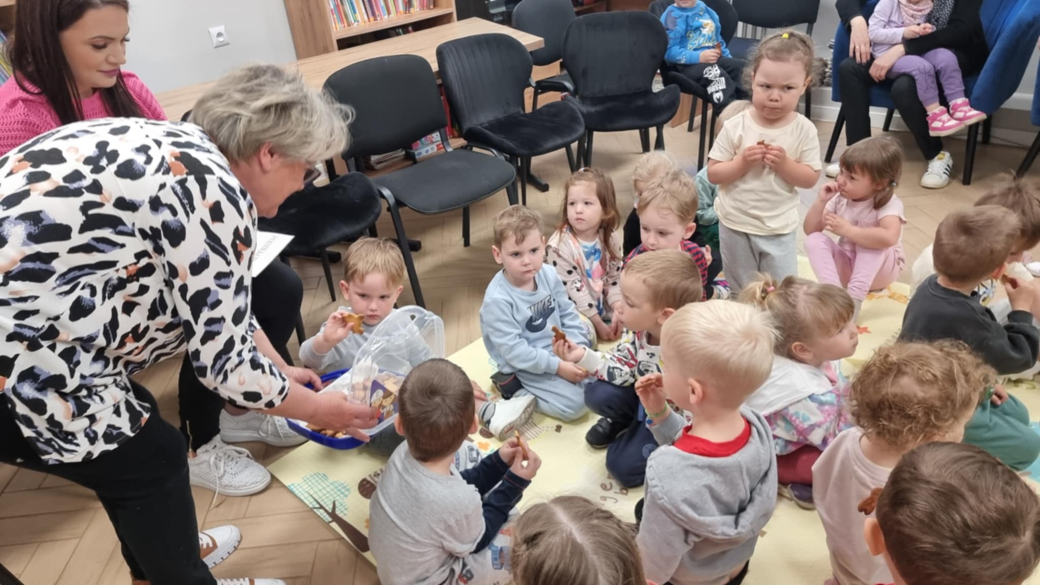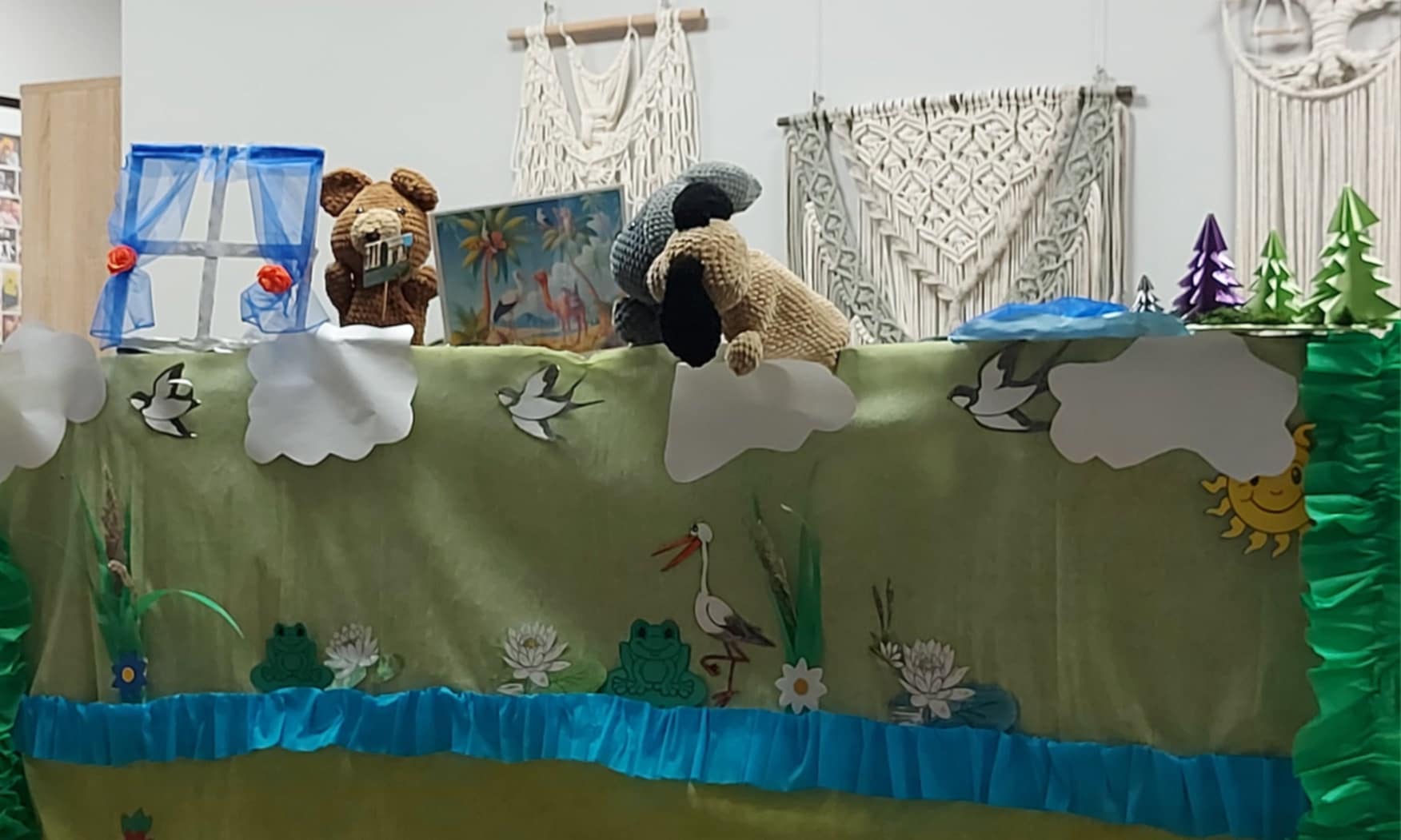 W Filii nr 1 Miejskiej Biblioteki Publicznej odbyło się wyjątkowe wydarzenie dla najmłodszych – teatrzyk kukiełkowy pt. "Wiosenne przygody Misia Uszatka". Spektakl został przygotowany i zaprezentowany przez utalentowane Panie z Klubu Rękodzieła, które własnoręcznie wykonały kukiełki oraz scenografię. Głównym bohaterem przedstawienia był dobrze znany i lubiany Miś Uszatek, który wraz z przyjaciółmi – Zajączkiem, Pieskiem i Kogucikiem– odkrywał oznaki nadchodzącej wiosny. Dzieci z grupy 3-latków z Przedszkola nr 2 z zaciekawieniem śledziły historię o budzącej się przyrodzie, pierwszych kwiatach, śpiewie ptaków i wiosennych porządkach. Barwna scenografia, spokojna narracja i sympatyczni bohaterowie sprawiły, że maluchy z uwagą i radością uczestniczyły w spektaklu. Nie zabrakło także wspólnego śpiewania piosenek i rozmów o tym, co zwiastuje nadejście wiosny. Dziękujemy Paniom z Klubu Rękodzieła za ciepłe i edukacyjne przedstawienie, które nie tylko bawiło, ale również uczyło najmłodszych obserwowania świata przyrody. Serdecznie dziękujemy również wszystkim dzieciom za aktywny udział, uśmiechy i radosną atmosferę – to dzięki Wam wiosna naprawdę zagościła w naszej bibliotece!