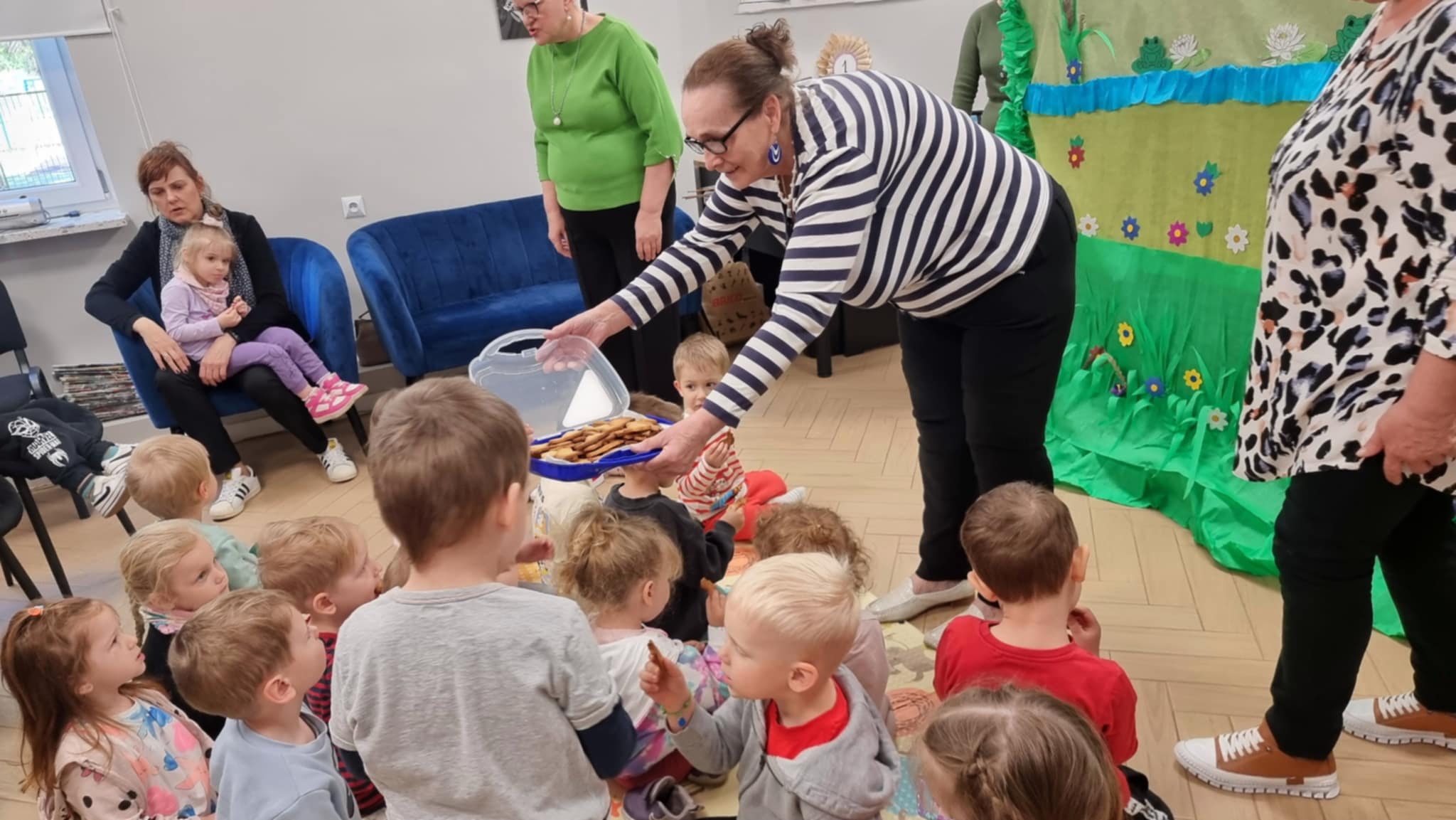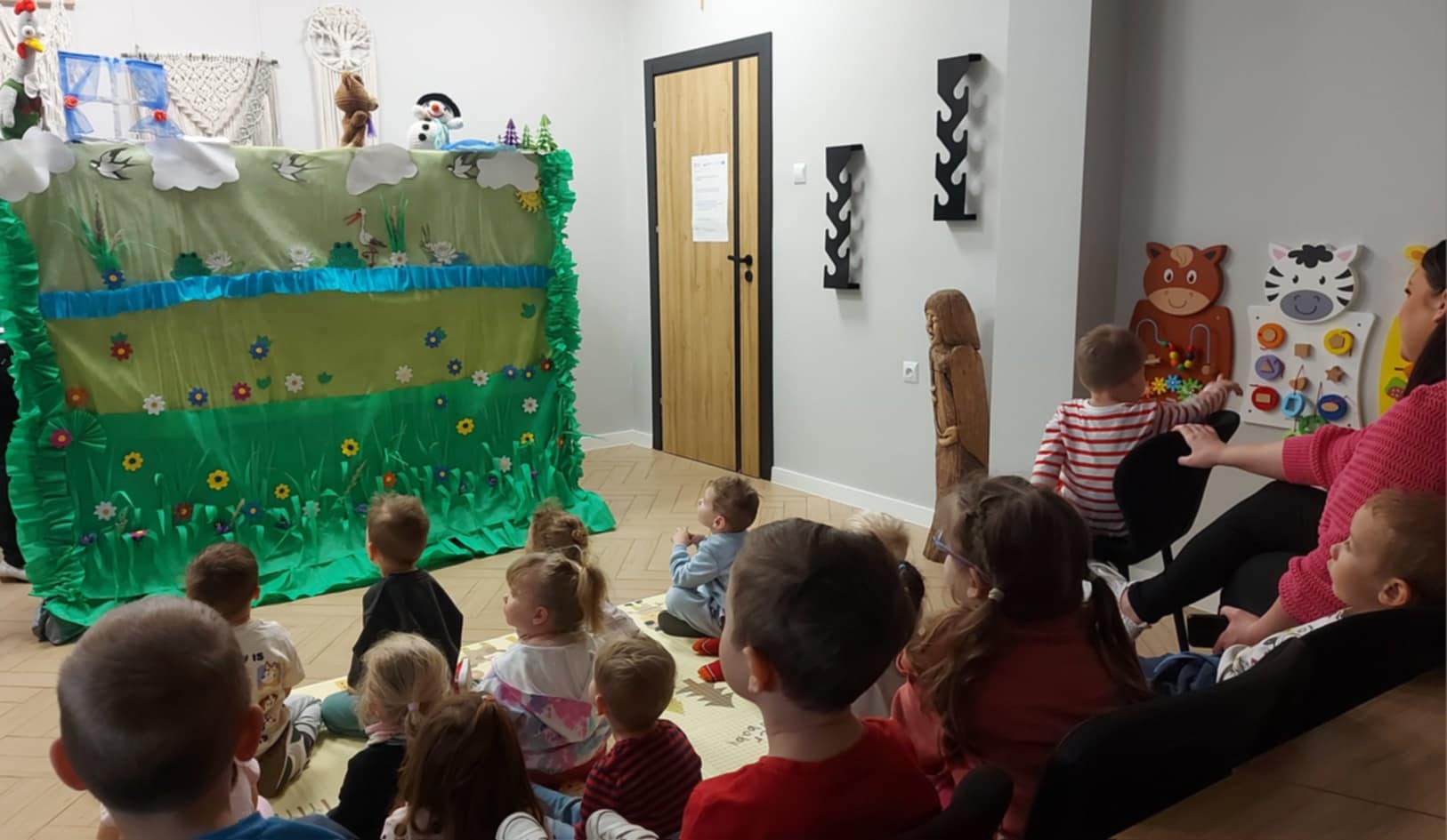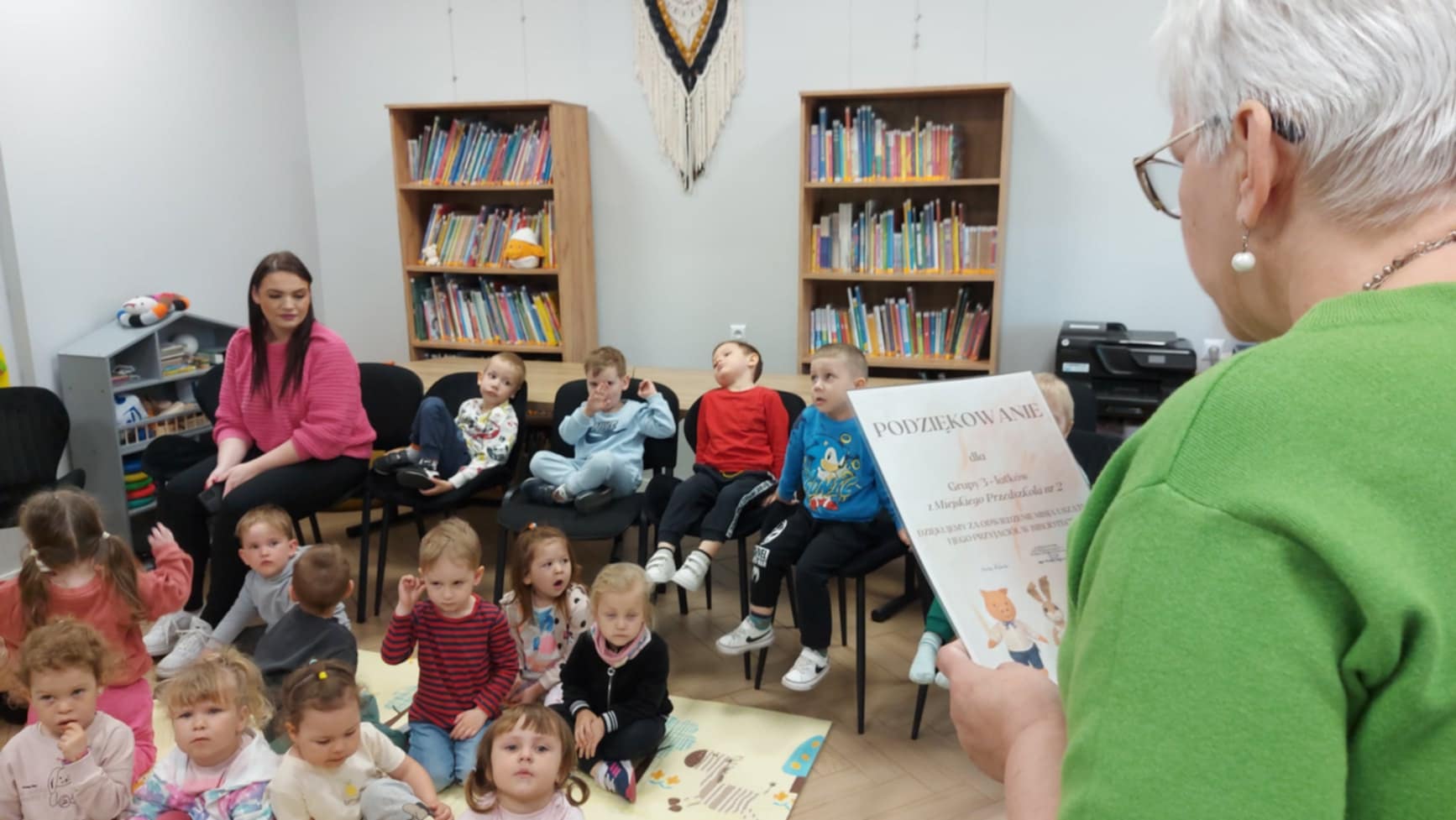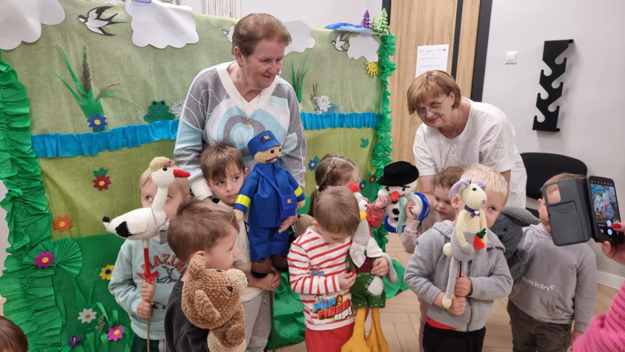 W Filii nr 1 Miejskiej Biblioteki Publicznej odbyło się wyjątkowe wydarzenie dla najmłodszych – teatrzyk kukiełkowy pt. "Wiosenne przygody Misia Uszatka". Spektakl został przygotowany i zaprezentowany przez utalentowane Panie z Klubu Rękodzieła, które własnoręcznie wykonały kukiełki oraz scenografię. Głównym bohaterem przedstawienia był dobrze znany i lubiany Miś Uszatek, który wraz z przyjaciółmi – Zajączkiem, Pieskiem i Kogucikiem– odkrywał oznaki nadchodzącej wiosny. Dzieci z grupy 3-latków z Przedszkola nr 2 z zaciekawieniem śledziły historię o budzącej się przyrodzie, pierwszych kwiatach, śpiewie ptaków i wiosennych porządkach. Barwna scenografia, spokojna narracja i sympatyczni bohaterowie sprawiły, że maluchy z uwagą i radością uczestniczyły w spektaklu. Nie zabrakło także wspólnego śpiewania piosenek i rozmów o tym, co zwiastuje nadejście wiosny. Dziękujemy Paniom z Klubu Rękodzieła za ciepłe i edukacyjne przedstawienie, które nie tylko bawiło, ale również uczyło najmłodszych obserwowania świata przyrody. Serdecznie dziękujemy również wszystkim dzieciom za aktywny udział, uśmiechy i radosną atmosferę – to dzięki Wam wiosna naprawdę zagościła w naszej bibliotece!