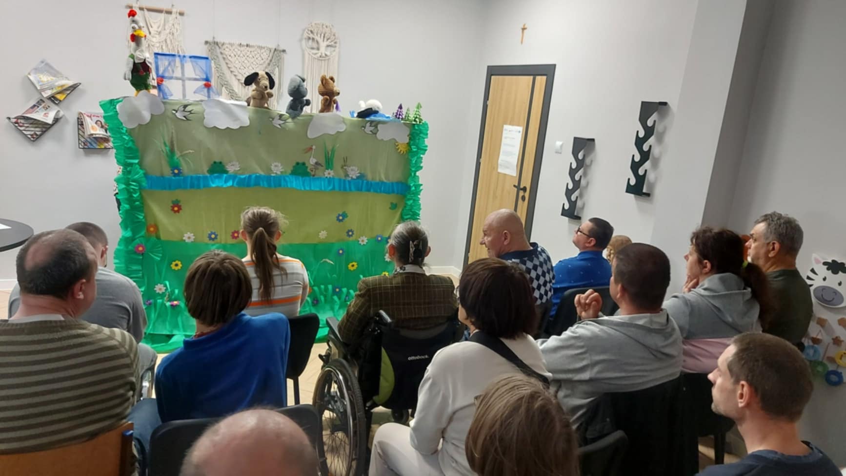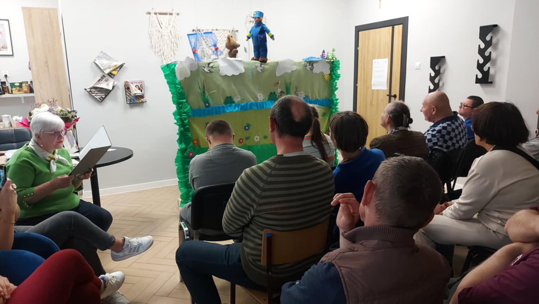 W Filii nr 1 odbyło się wyjątkowe spotkanie z dobrze znanym i lubianym bohaterem dzieciństwa – Misiem Uszatkiem. Dla uczestników Środowiskowego Domu Samopomocy przygotowano inscenizację opartą na przygodach sympatycznego misia i jego przyjaciół. W kameralnej atmosferze biblioteki, wśród kolorowych dekoracji i bajkowych rekwizytów, ożyły postacie z klasycznej dobranocki. Przedstawienie miało charakter edukacyjny i integracyjny – poruszało wartości takie jak przyjaźń, wzajemna pomoc i szacunek. Aktorzy z zaangażowaniem wcielali się w swoje role, a barwna scenografia i muzyczne akcenty dodatkowo umiliły czas widzom. Uczestnicy z wielkim zainteresowaniem śledzili losy bohaterów, często reagując uśmiechem i brawami. Po zakończeniu spektaklu odbyła się krótka rozmowa o przedstawieniu, a także możliwość wspólnego zdjęcia z Misiem Uszatkiem. Spotkanie było nie tylko formą rozrywki, ale też wartościową formą terapii i integracji społecznej. Pozwoliło uczestnikom na chwilę relaksu, a także rozwijało wyobraźnię i umiejętność odbioru sztuki teatralnej. Dla wielu było to nostalgiczne przypomnienie dzieciństwa i okazja do wspólnego przeżywania pozytywnych emocji.