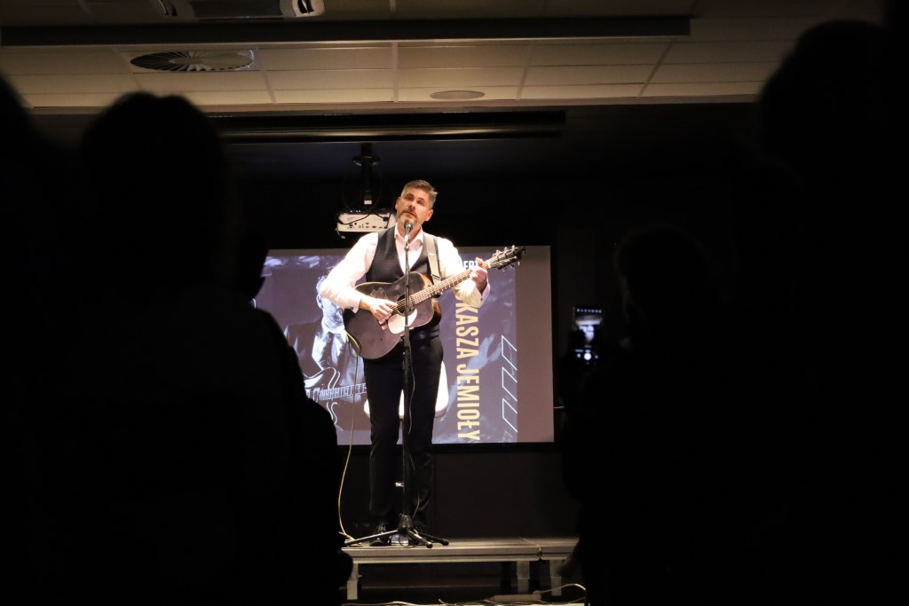 Już od pierwszych dźwięków było jasne, że zapowiada się wieczór pełen muzycznych wrażeń. Artysta zaprezentował repertuar łączący autorskie kompozycje z klasycznymi tekstami, okraszając je ciepłą barwą głosu i charakterystycznym brzmieniem gitary, w której mistrzowsko operował techniką fingerpicking. Nastrojowe utwory pełne poetyckiej wrażliwości wprowadziły słuchaczy w refleksyjny nastrój, a subtelne aranżacje spotkały się z entuzjastycznym odbiorem. Publiczność miała okazję usłyszeć m.in. utwory z repertuaru Eugeniusza Bodo, Mieczysława Fogga Zbigniewa Wodeckiego, Marka Grechuty, Andrzeja Zauchy, a także Louisa Armstronga i Beatlesów. W trakcie koncertu nie zabrakło chwil, gdy sala rozbrzmiewała wspólnym śpiewem – publiczność śpiewała razem z Łukaszem Jemiołą, dając się porwać muzyce Artysta zbudował z publicznością niezwykle ciepłą i kameralną atmosferę. Wieczór zakończył się owacjami na stojąco, a wiele osób długo po ostatnim utworze nie opuszczało sali, by choć na chwilę porozmawiać z artystą . Publiczność, oczarowana koncertem, licznie ustawiała się do wspólnych zdjęć z wokalistą, aby zatrzymać w kadrze ten muzyczny wieczór. Wydarzenie bez wątpienia pozostanie na długo w pamięci uczestników. Był to koncert, który dostarczył doznań artystycznych na najwyższym poziomie.