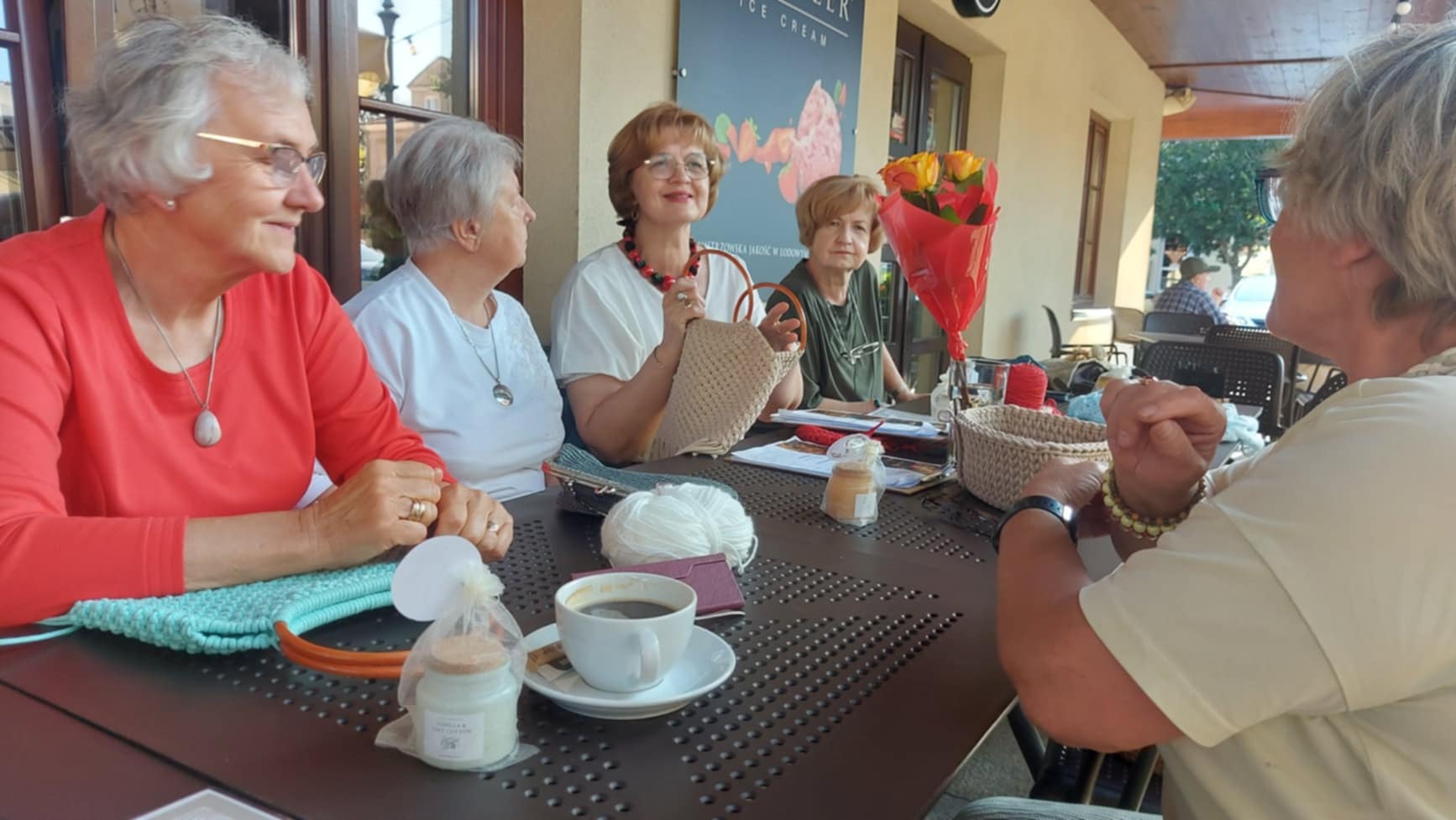 We wtorkowe popołudnie, z okazji Światowego Dnia Dziergania w Miejscach Publicznych, odbyło się wyjątkowe spotkanie plenerowe, które jednocześnie stanowiło uroczyste zakończenie sezonu 2024/25 Klubu Rękodzieła. Uczestniczki zebrały się w serdecznej atmosferze w otoczeniu zieleni i miejskiego gwaru, by wspólnie celebrować swoją pasję do rękodzieła. Panie z zapałem szydełkowały, dzieląc się doświadczeniem, pomysłami i uśmiechem, a towarzyszyły im aromatyczne filiżanki kawy, rozgrzewająca herbata i domowe ciasta – wszystko to dzięki gościnności kawiarni Cafe Rynek, której serdecznie dziękujemy za ciepłe przyjęcie i stworzenie idealnych warunków do spotkania. Na zakończenie sezonu składamy gorące podziękowania wszystkim uczestniczkom spotkań Klubu Rękodzieła – za obecność, kreatywność i niezwykłą atmosferę, którą wspólnie udało się stworzyć przez cały rok. To dzięki Wam te chwile mają wyjątkowy charakter! Do zobaczenia po wakacyjnej przerwie – z nową energią i nowymi pomysłami!