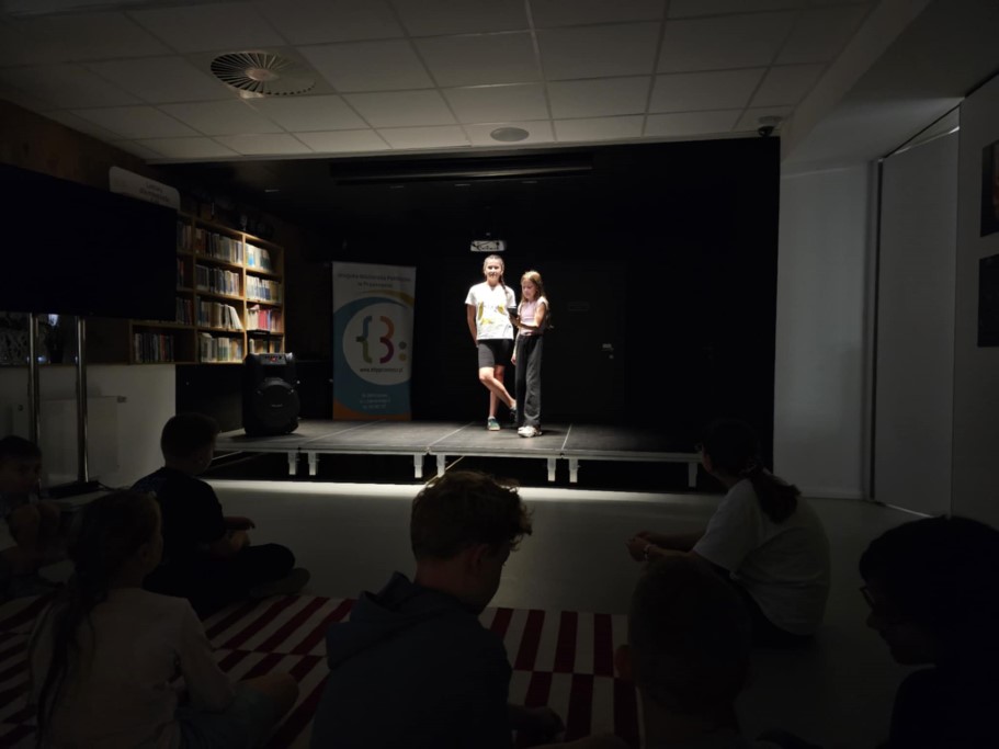 Spotkanie rozpoczęliśmy od wspólnych zabaw ruchowych, które rozgrzały wszystkich do świetnej zabawy i wywołały mnóstwo śmiechu. Potem przyszedł czas na wyjątkowy punkt programu – pokaz talentów. Chętni uczestnicy mogli zaprezentować to, w czym czują się najlepsi: były tańce, śpiew, a także zupełnie zaskakujące występy, które rozbudziły wyobraźnię publiczności. Każdy występ nagradzany był gromkimi brawami, a atmosfera pełna była życzliwości i pozytywnej energii.