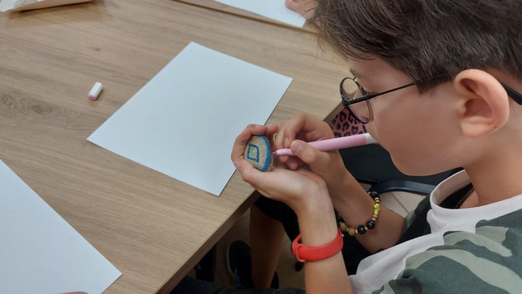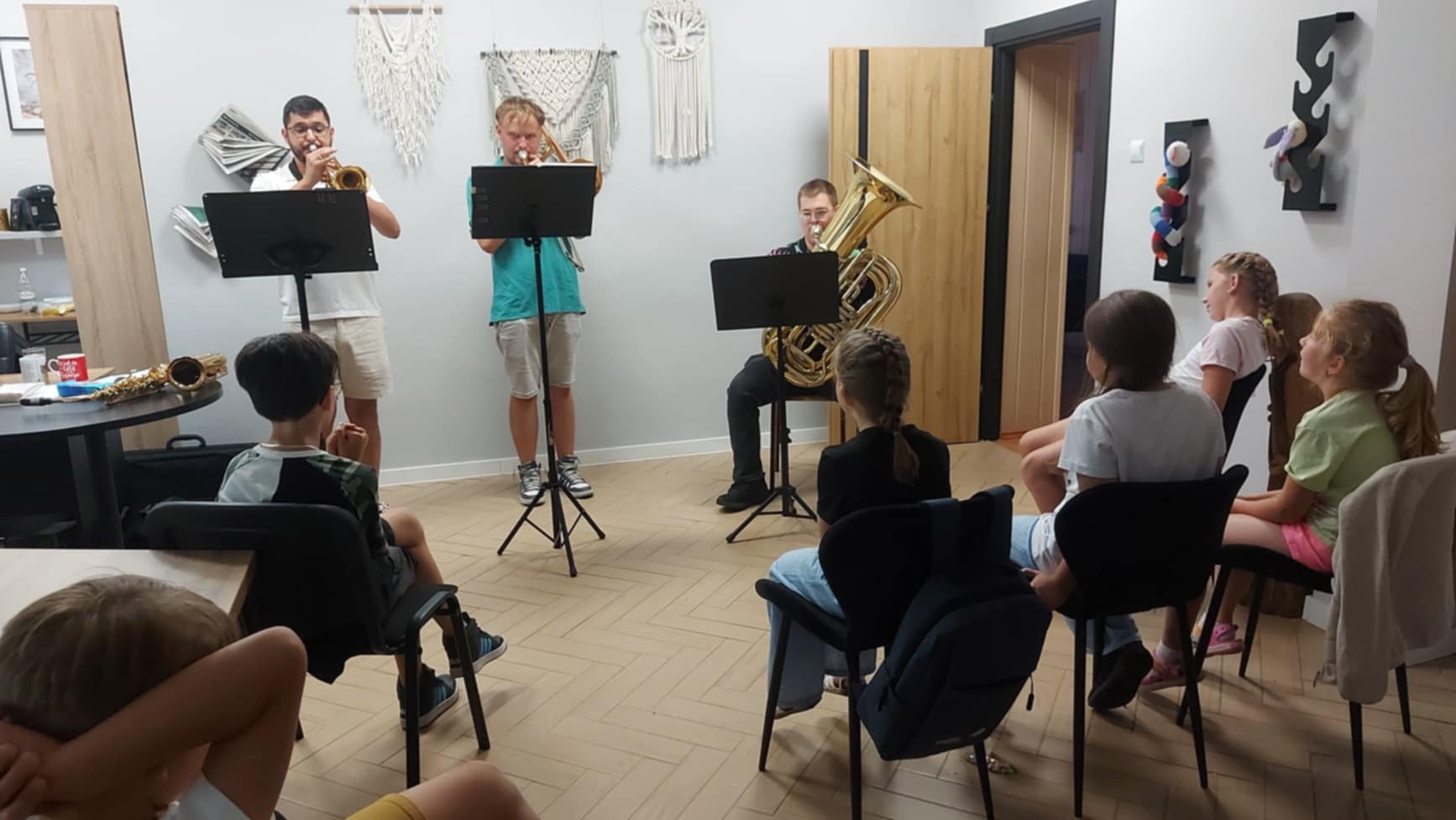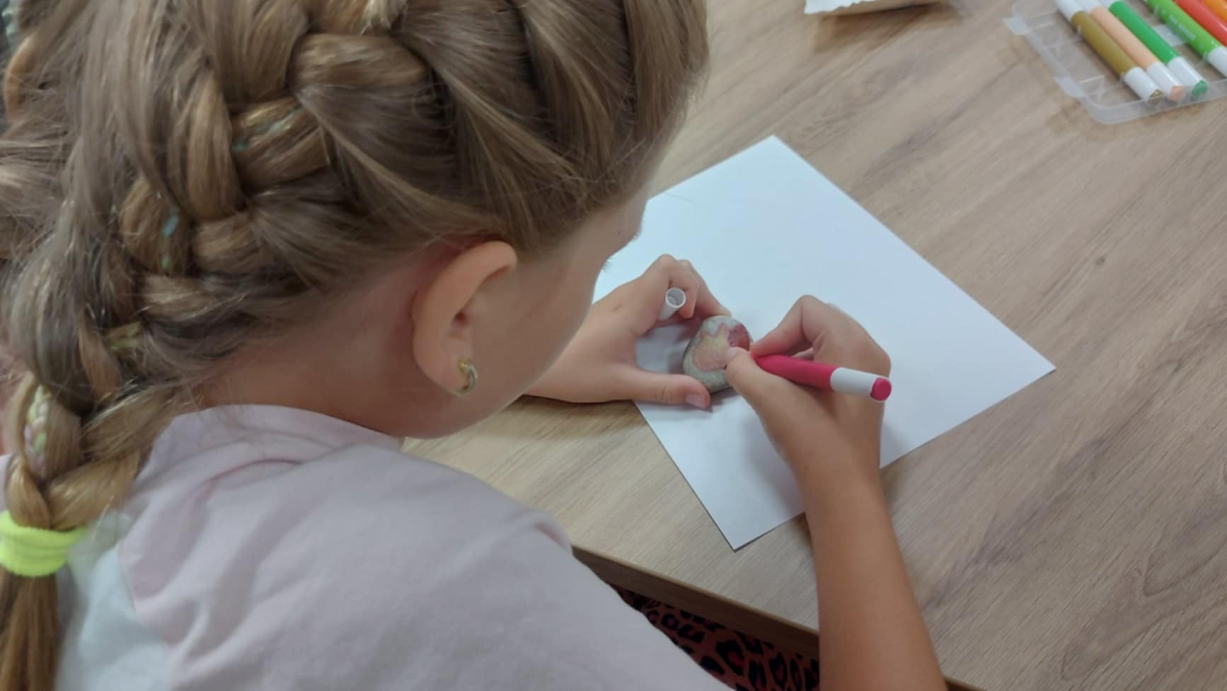 Drugi dzień wakacyjnych zajęć w Filii nr 1 upłynął w twórczej i radosnej atmosferze. Spotkanie rozpoczęła Jolanta Pawlak, która przeczytała dzieciom bajkę terapeutyczną pt. "Kasia i lato w mieście" . Bohaterka opowieści, z różnych powodów, nie mogła wyjechać na wakacje i musiała spędzić je w mieście, co stało się punktem wyjścia do rozmów o tym, jak ciekawie i radośnie spędzać czas w miejscu zamieszkania. Następnie uczestnicy sięgnęli po kolorowe flamastry i ozdabiali nimi kamyki w ramach inicjatywy #kamyczki. Po zakończeniu pracy małe dzieła zostały rozmieszczone podczas wspólnego spaceru w różnych zakątkach okolicy, aby mogły cieszyć innych przechodniów. Druga część dnia należała do muzyki. Maciej Kowalski, kapelmistrz Gminnej Orkiestry Dętej z Czernic Borowych, wraz z muzykami orkiestry poprowadził zajęcia, podczas których dzieci wzięły udział w quizie muzycznym. Była to doskonała okazja do poznania instrumentów dętych, muzycznych ciekawostek i wspólnej zabawy dźwiękiem. Spotkanie miało na celu propagowanie kultury muzycznej wśród najmłodszych i pokazało, że sztuka – zarówno plastyczna, jak i muzyczna – może być doskonałym sposobem na spędzenie wakacyjnego dnia.