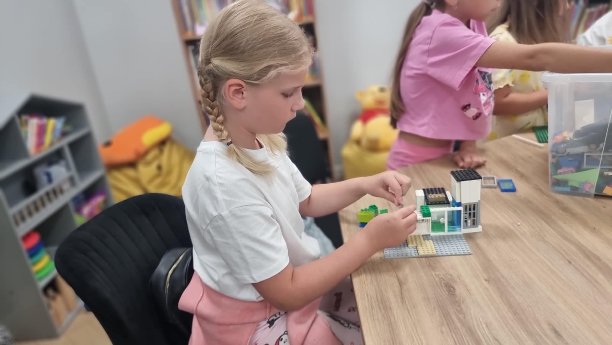 W drugiej części dnia na dzieci czekało zupełnie inne wyzwanie – konstruowanie budowli z klocków LEGO. Ta część zajęć pobudziła wyobraźnię i umiejętności techniczne uczestników, a efektem były imponujące, kolorowe konstrukcje, które powstawały dzięki współpracy i pomysłowości młodych budowniczych.