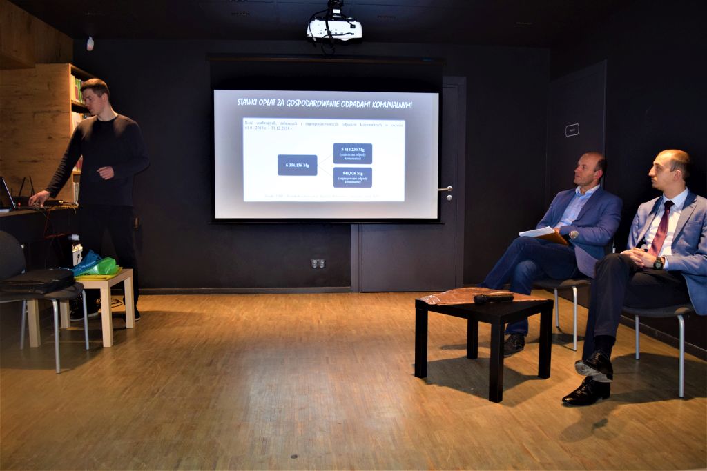 Prelegenci - Hubert Kwiatkowski oraz Cezary Świderski informowali zebranych uczestników m.in. o stawkach opłat za gospodarowanie odpadami komunalnymi, edukacji ekologicznej w zakresie segregacji odpadów a także o wprowadzeniu nowego systemu segregowania odpadów komunalnych w budownictwie wielorodzinnym w postaci tzw. minipszoków. Mieszkańcy po prezentacji mieli okazję wziąć udział w dyskusji a także podzielić się swoimi pomysłami i przemyśleniami.