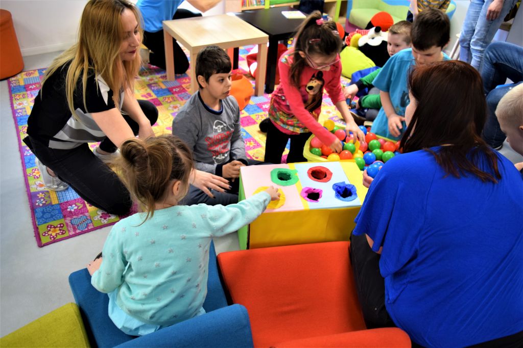 Piękne kolorowe zajęcia przypomniały dzieciom o wiośnie a także o zbliżających się świętach wielkanocnych. Dzieci wykonały papierowy koszyczek, do którego włożyły pisanki i małe, słodkie jajeczka czekoladowe. Dzisiejsze spotkanie było również fantastyczną okazją aby namalować niekonwencjonalną metodą obrazek oczywiście w wiosennych barwach. Dzieci dobrze się bawiły, miło spędziły czas a przede wszystkim zaprzyjaźniły się z naszą instytucją oraz pracownikami biblioteki.