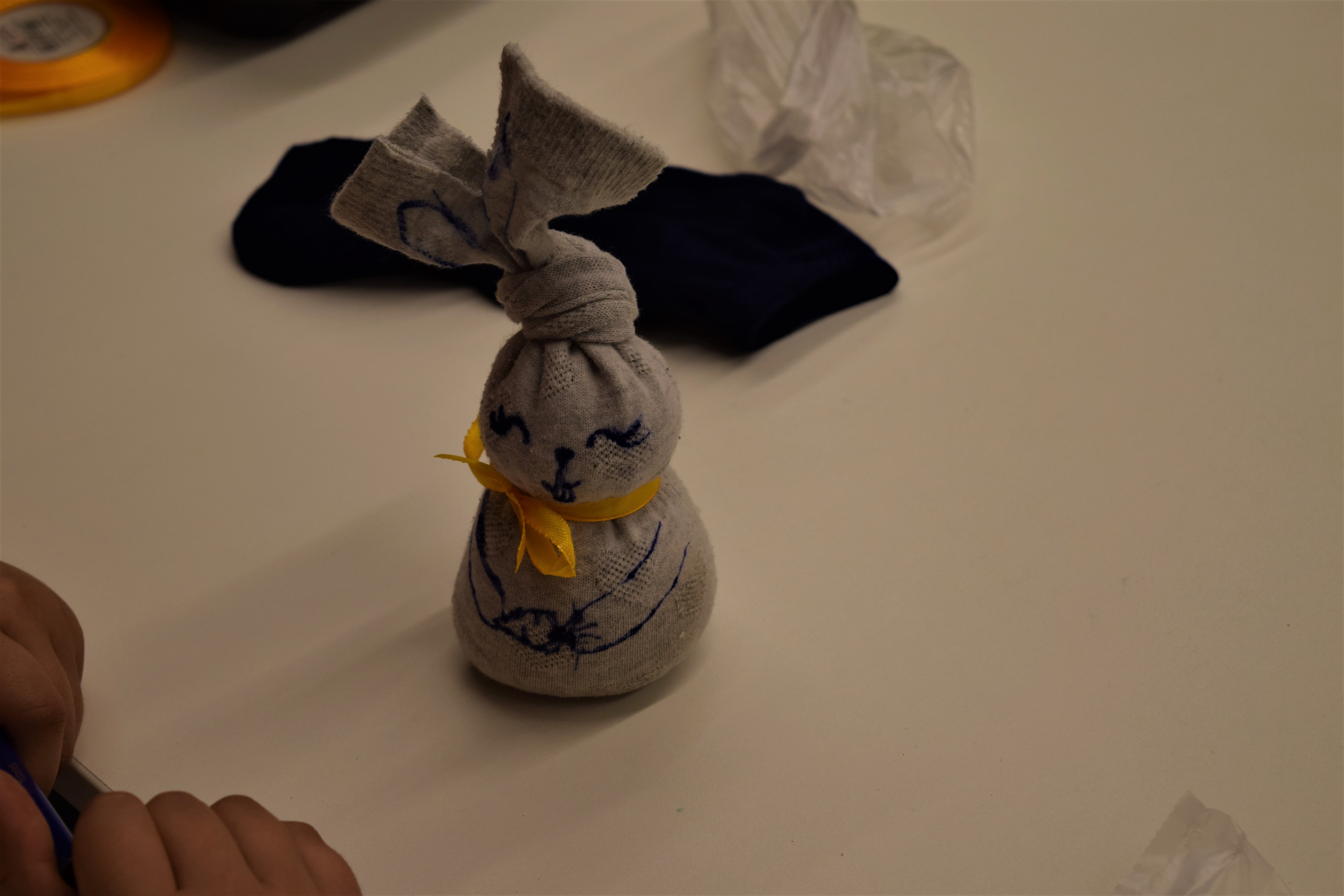 Dzieci miały okazję lepiej poznać książkę Justyny Bednarek "Niesamowite przygody dziesięciu skarpetek. Czterech prawych i sześciu lewych". Po wysłuchaniu jednego z rozdziałów zabraliśmy się za prace plastyczne. Za pomocą ryżu oraz skarpetek stworzyliśmy piękne króliczki. Nie lada wyzwaniem okazało się odszukanie na rysunku ukrytych skarpetek. Dzięki zabawom ruchowym, mogliśmy nie tylko skorzystać z pięknej pogody ale również poprawić koncentrację i kondycję. Nie zabrakło zabaw w kolory, skoków na skakance, kultowej gry "Ciepło zimno" czy też "Szczura". Podsumowaniem było wykonanie pracy plastycznej, polegającej na zaprojektowaniu swojej niepowtarzalnej skarpetki. Wszystkim uczestnikom serdecznie dziękujemy za obecność.