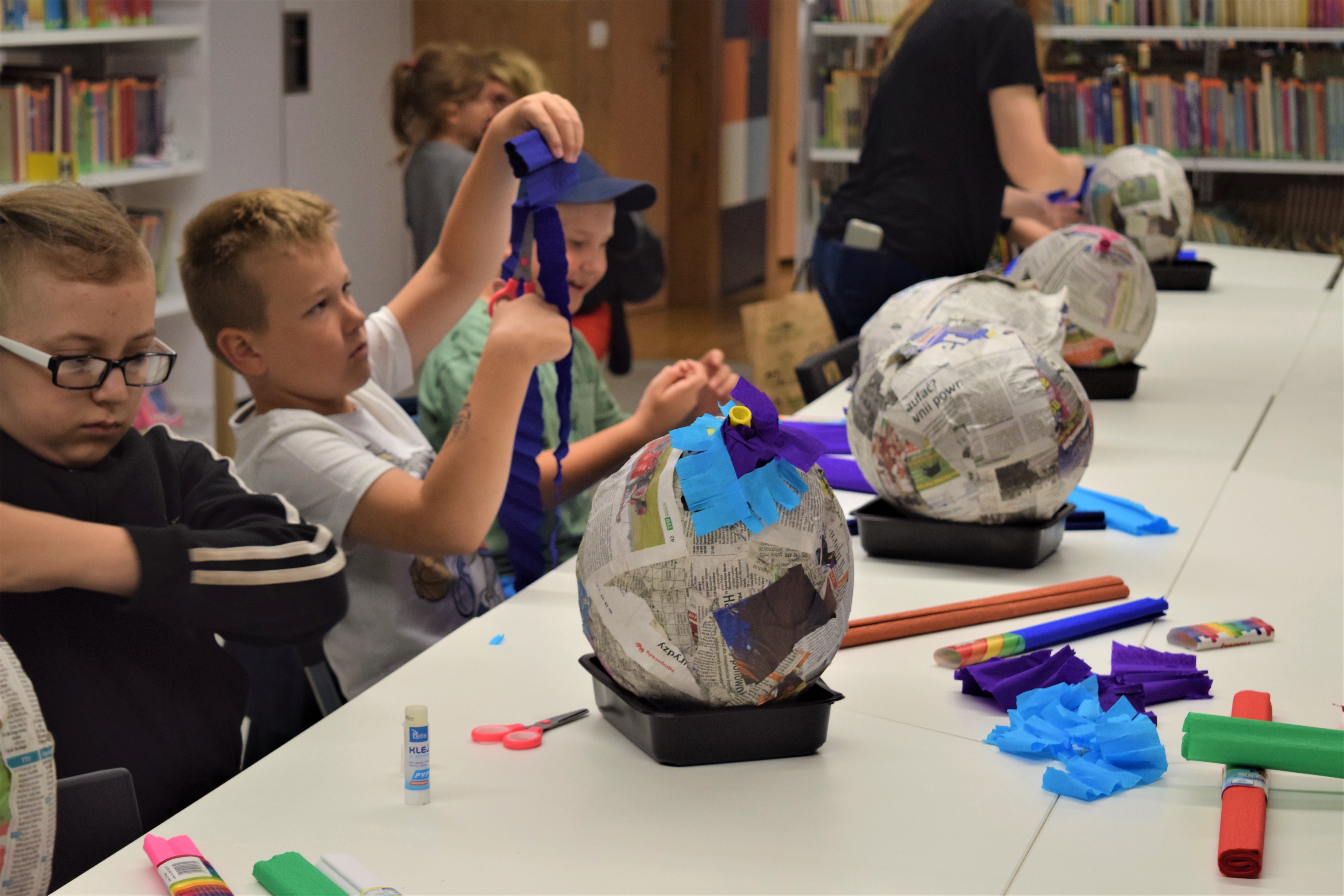 Na początku zajęć dzieci kończyły robić swoje piniaty. Pociętymi paskami bibuły oklejały przygotowane na poprzednich zajęciach balony. Powstałe piniaty, dzieci napełniły cukierkami. W kolejnej części nasi mali uczestnicy uczyli się programować nasze nowe roboty - Ozoboty. Podczas zajęć dowiedziały się jaka jest zasada działania robota, a następnie przy pomocy karty kodów tworzyli własne trasy dla Ozobota oraz zmagali się z prostymi zadaniami z programowania. Na pamiątkę każde dziecko otrzymało dyplom.