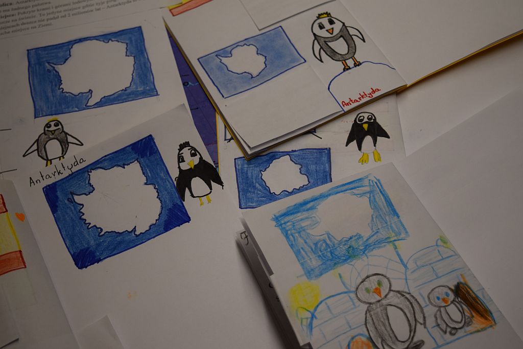 Podczas dzisiejszego spotkania zabraliśmy uczestników w podróż na Antarktydę. Dzięki prezentacji, dzieci mogły lepiej poznać ten mroźny kontynent a paszporty podróżnika zapełniły się o kolejne ciekawe informacje.
