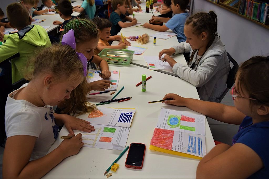 Podczas dzisiejszych zajęć uczestnicy Wakacji z Biblioteką wyruszyli w „podróż” do Włoch. Dzieci poznały zwyczaje i obyczaje tego kraju. Ogromną radość sprawiła dzieciom nauka podstawowych zwrotów w języku włoskim.