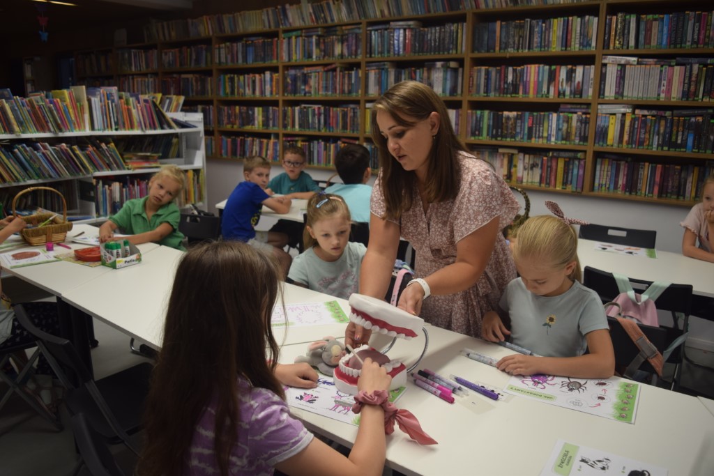 Nasz gość opowiadał dzieciom o zasadach bezpieczeństwa podczas wypoczynku letniego nad wodą, w górach, czy też lesie. Poruszony też został temat kleszczy, jak uchronić się przed ich atakiem i co zrobić jeśli taki wbije się w naszą skórę. Pani Marta w sposób bardzo przystępny przekazała te wszystkie informację naszym uczestnikom.