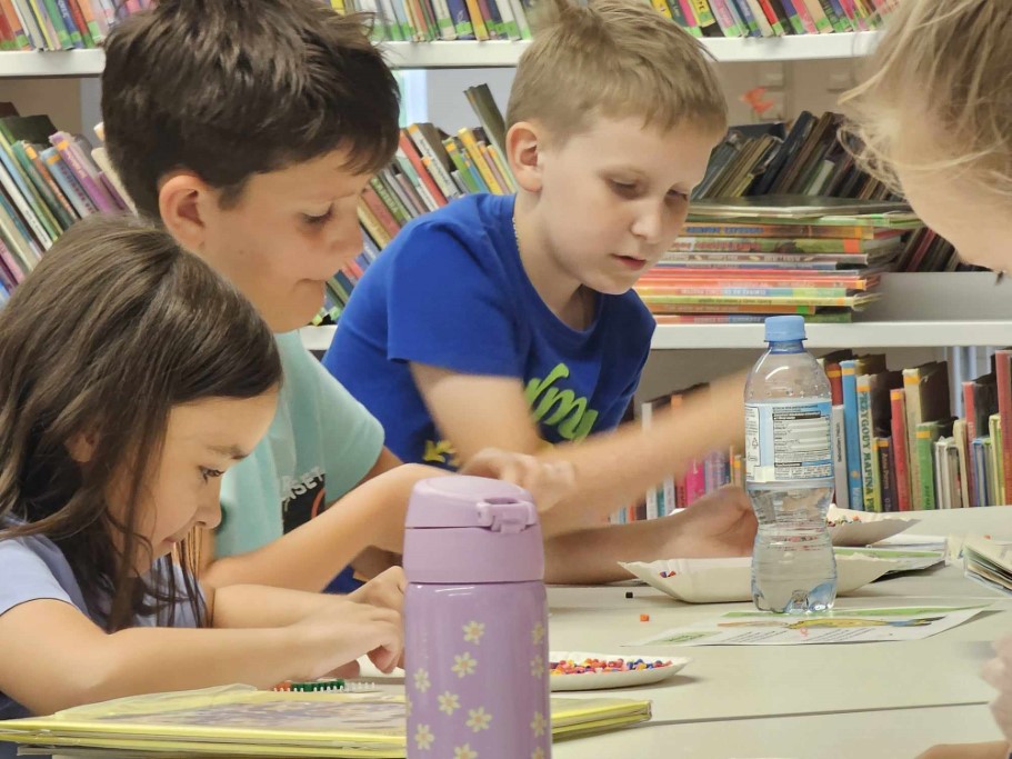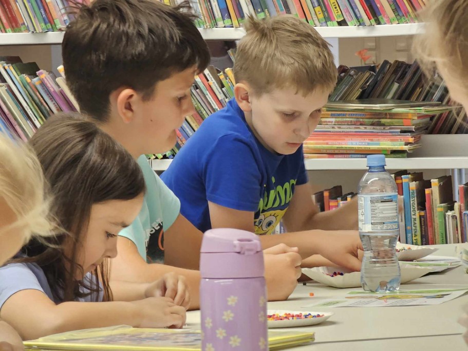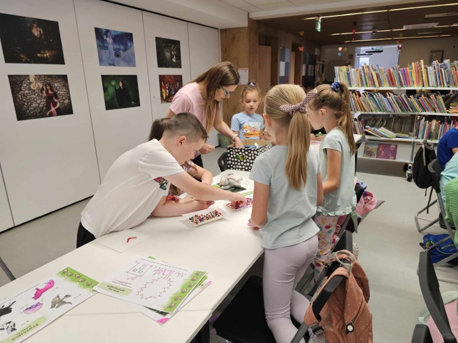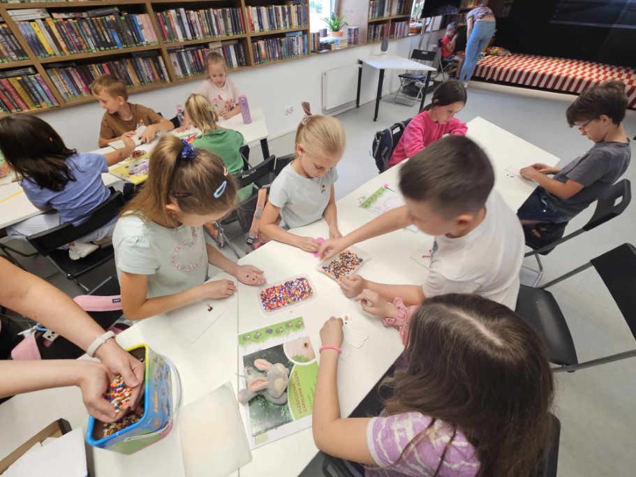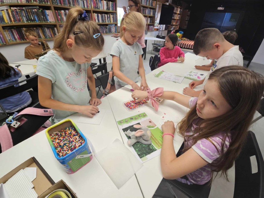Druga część zajęć poświęcona była tworzeniu niepowtarzalnych wzorów przy użyciu koralików HAMA, których cechą charakterystyczną jest możliwość układania dowolnych kompozycji aż do momentu ich utrwalenia poprzez zaprasowanie. Dzieci wykazały się ogromną kreatywnością oraz skupieniem podczas tworzenia wybranych przez siebie kształtów.