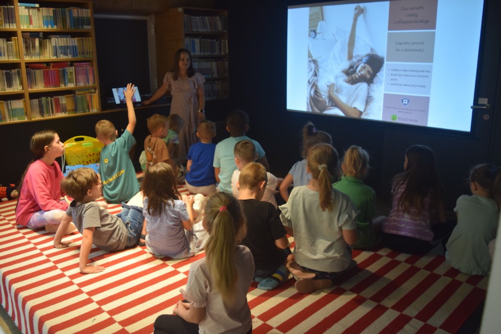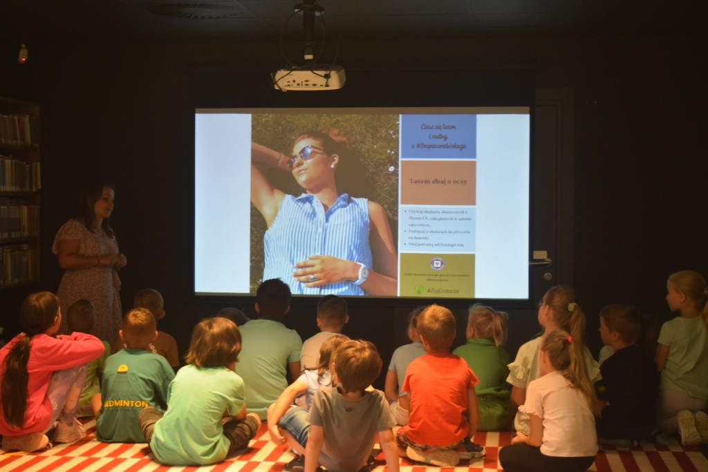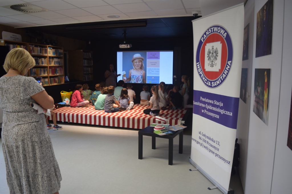 Podczas czwartego dnia Wakacji z Biblioteką odwiedziła nas Pani Marta Pęczkowska z Powiatowej Stacji Sanitarno - Epidemiologicznej w Przasnyszu.