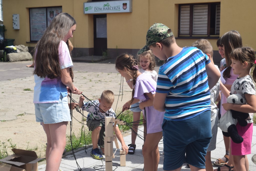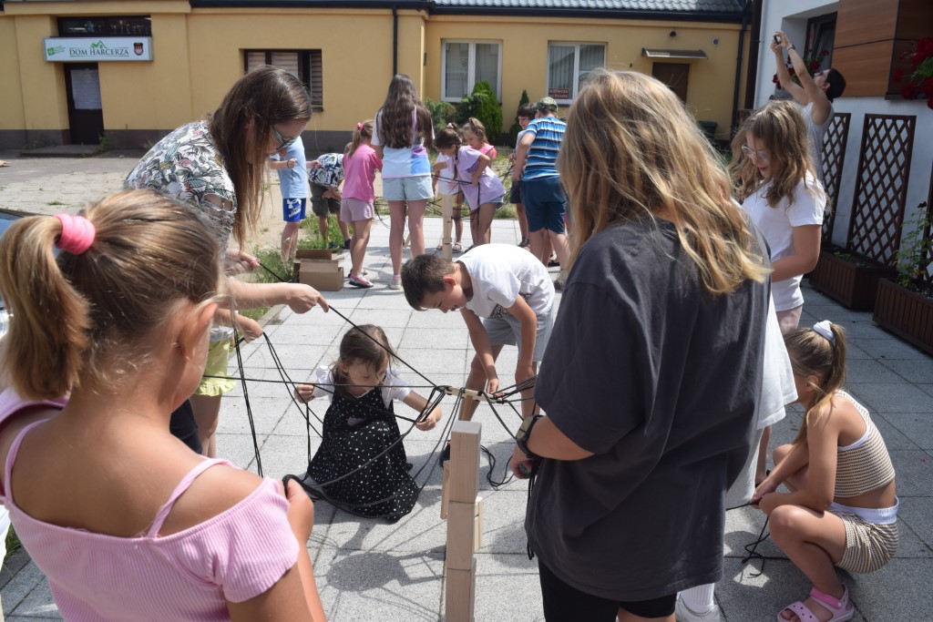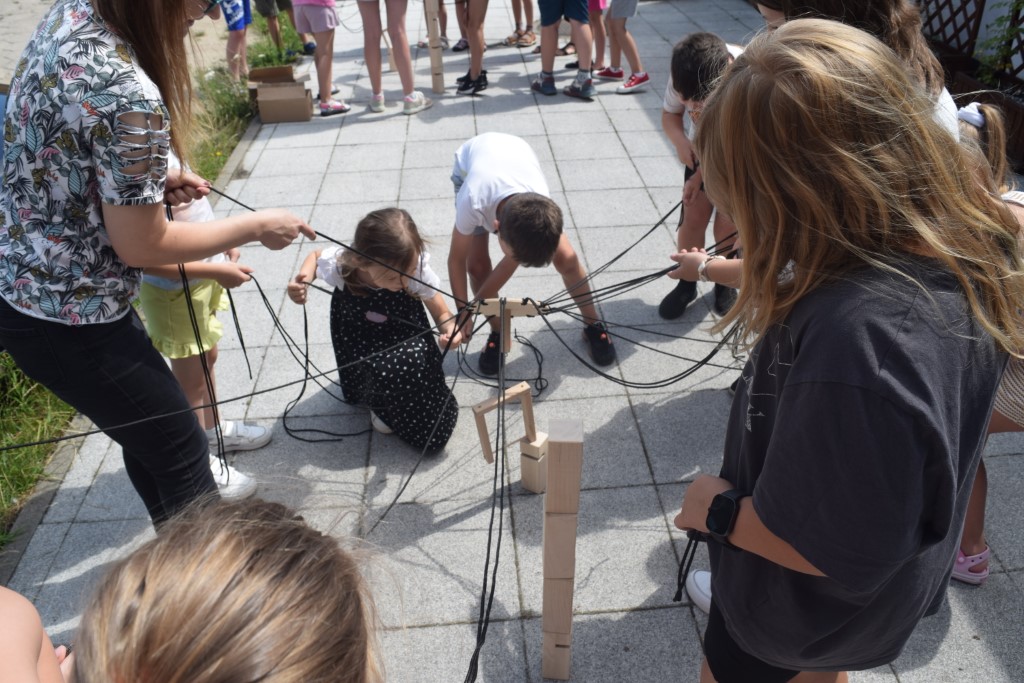 Nie obyło się bez zabaw na świeżym powietrzu, podczas których m.in. wykorzystaliśmy grę "Wieża liderów". Gra wymagała od uczestników ustawienia jak najwyższej wieży z drewnianych klocków.