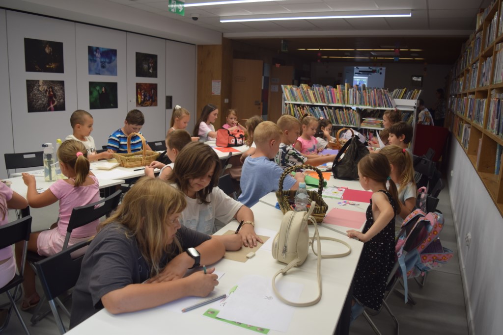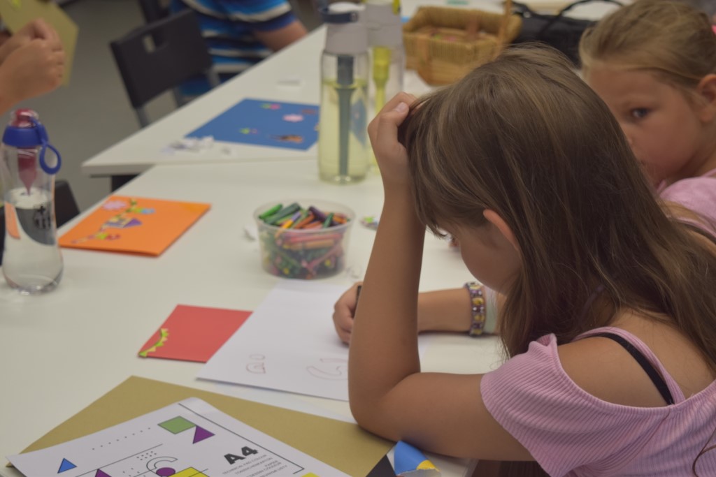 Ostatnią częścią dzisiejszego spotkania było stworzenie kartki wakacyjnej z trakcie warsztatów scrapbookingu. Scrapbooking to technika ozdabiania kartek okolicznościowych, pudełek, albumów ze zdjęciami, notesów i innych przedmiotów użytkowych za pomocą kolorowych papierów, wzorów, stempli, gotowych kształtów i szablonów, tasiemek, koronek, gazet, guzików i wielu innych materiałów.