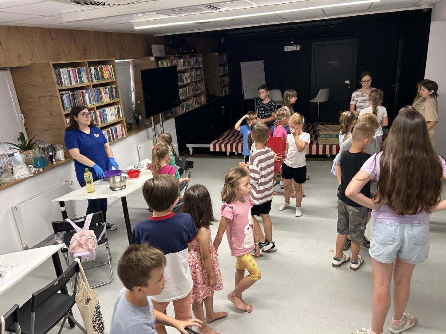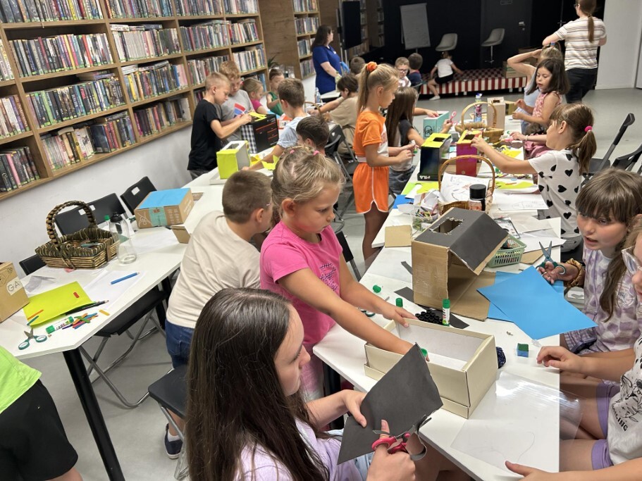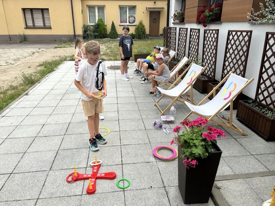 Wakacje z Biblioteką powoli dobiegają końca. Ósmy dzień zajęć rozpoczęliśmy od aktywności fizycznych na świeżym powietrzu.