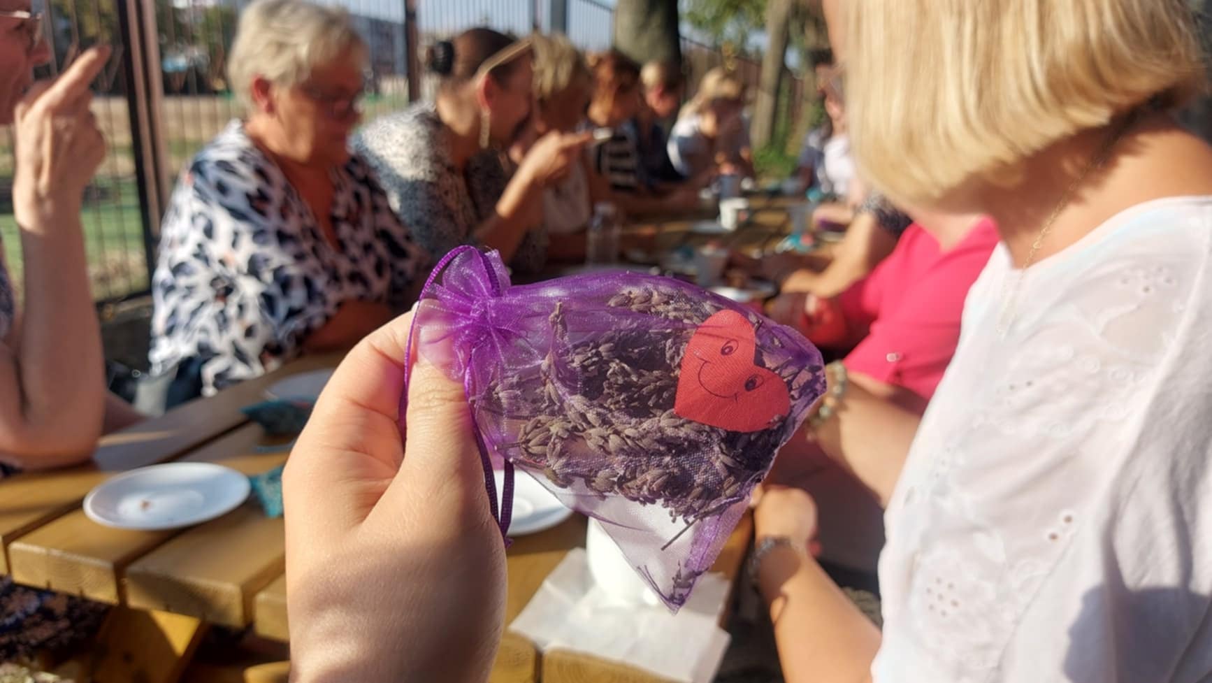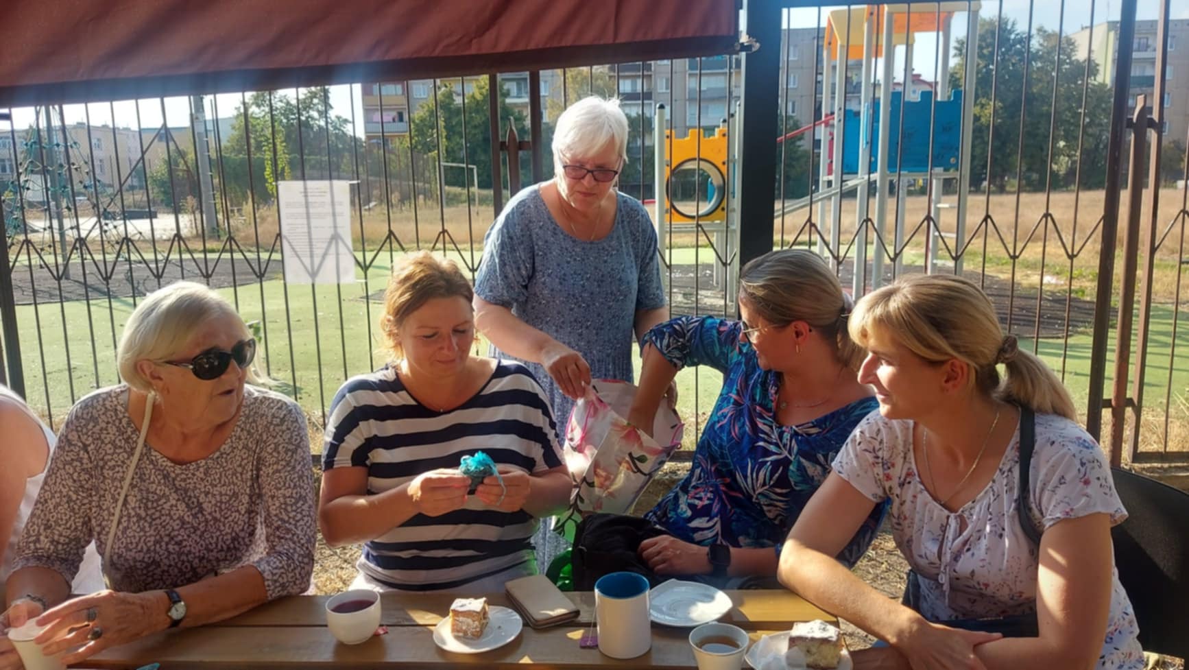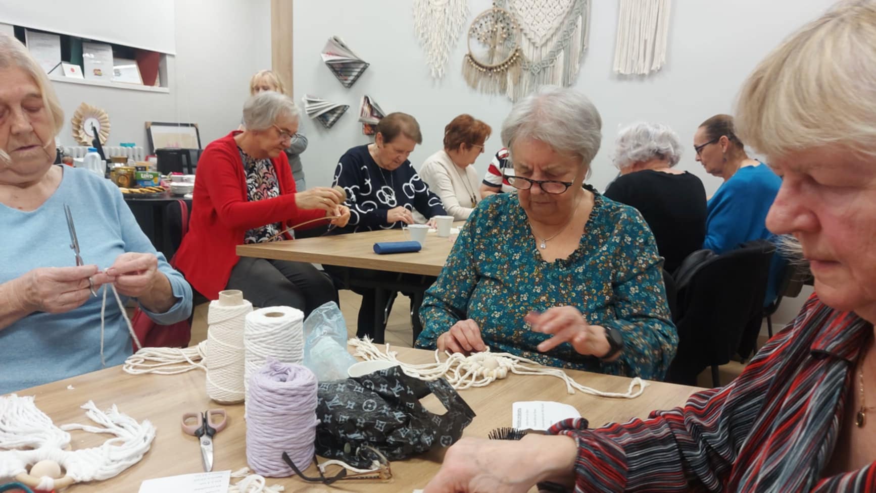 Piękna pogoda pozwoliła nam na korzystanie ze promieni słońca w Ogródku Społecznościowym "W między czasie". Podczas pierwszego spotkania jedna z członkiń klubu, Pani Anna Rośleń wręczyła własnoręcznie wykonane upominki - pachnące woreczki wypełnione lawendą z ogródka Pani Ani. Na kolejnych wrześniowych spotkaniach Panie uczyły się splotu makramowego potrzebnego do wykonania dekoracyjnych poszewek na poduszki.
