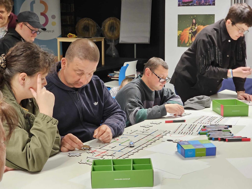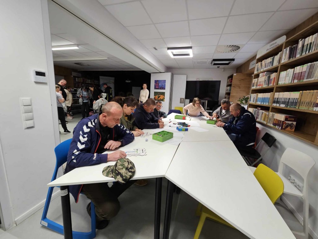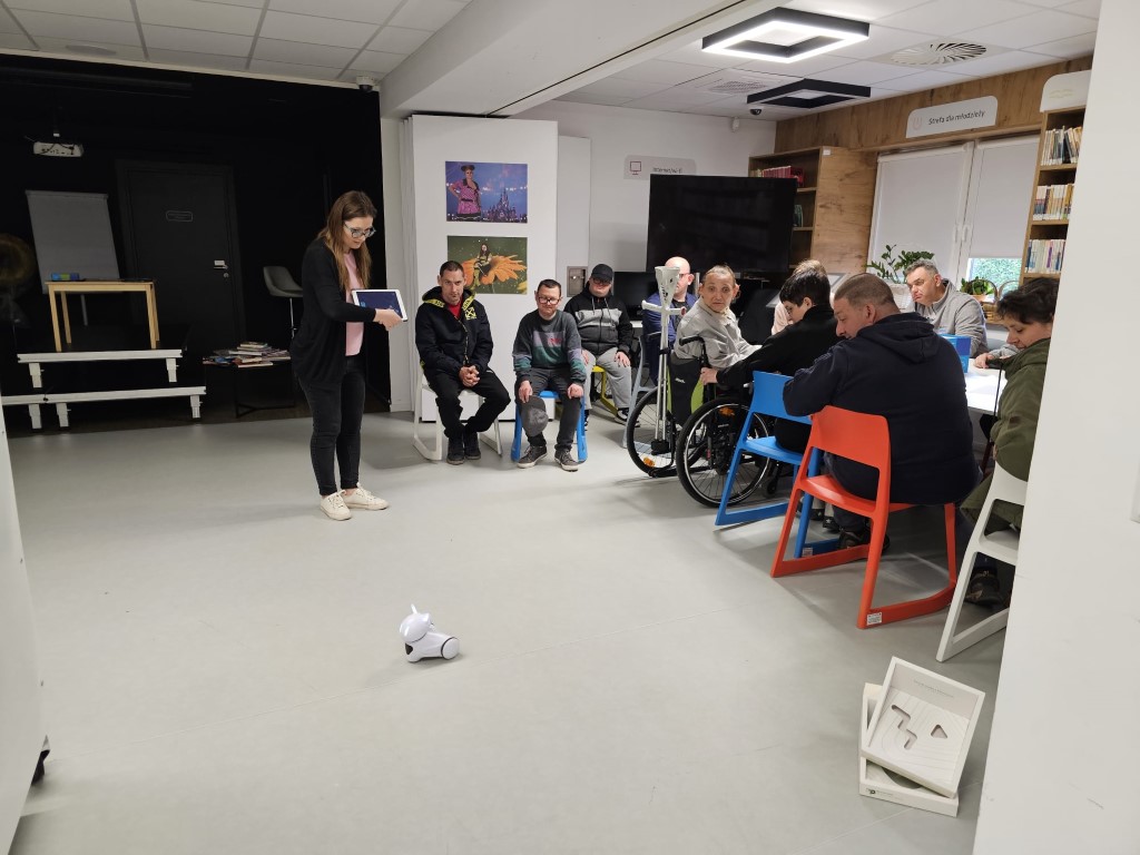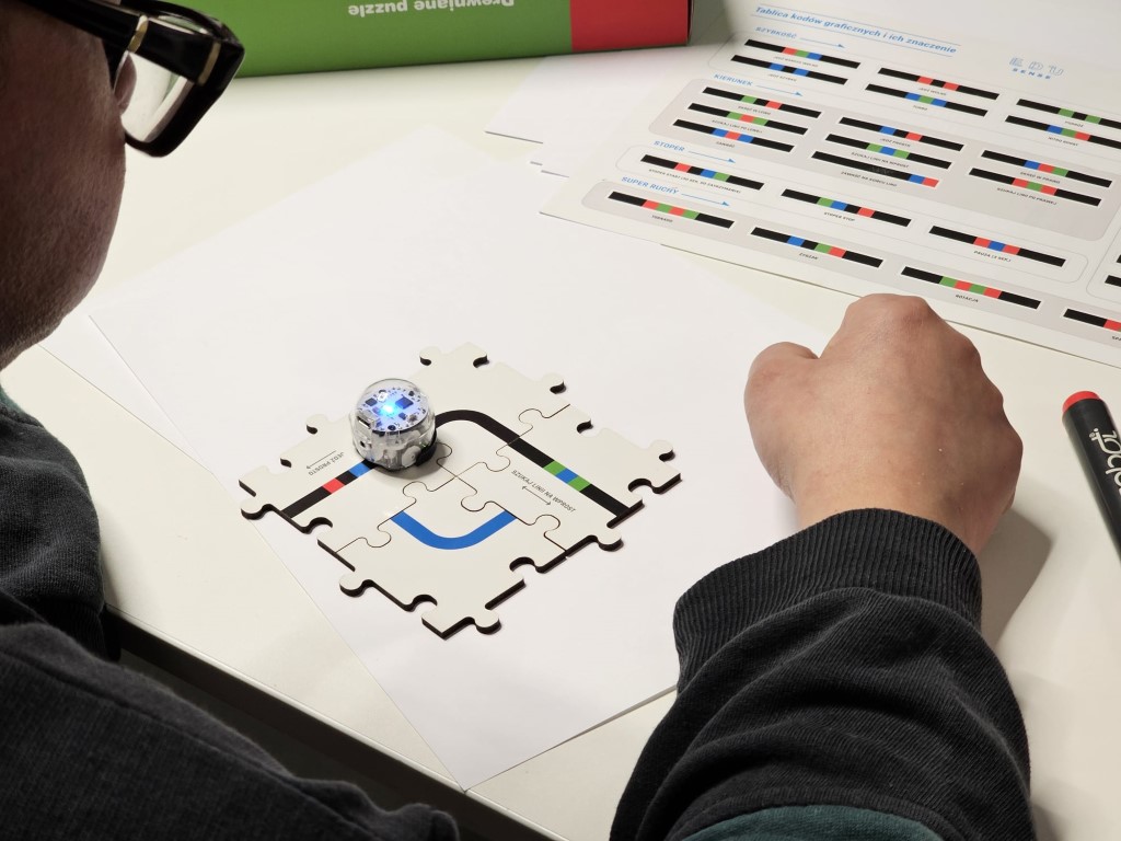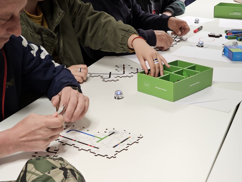 Tematem spotkania były nowe technologie, nasi goście uczyli się programować roboty Photon i Ozoboty. Uczestnicy mieli za zadanie zaprogramować roboty tak, aby przejechały po wyznaczonej trasie, wydały dźwięk i zmieniły kolor. Natomiast Ozoboty odpowiednio zakodowane poruszały się po wytyczonej trasie z puzzli, którą wcześniej musieli sami zaprojektować. Temat zajęć bardzo podobał się naszym gościom. Zajęcia przebiegły w doskonałej atmosferze.
