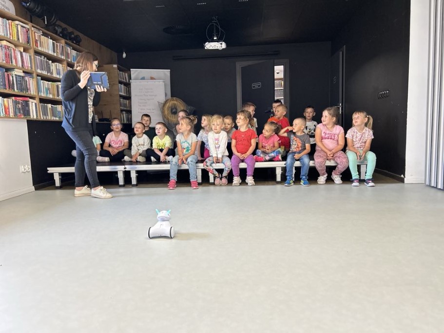 Dzisiejszego dnia Miejską Bibliotekę odwiedziła grupa 4-5 latków z Niepublicznego Przedszkola Wiola. Motywem przewodnim dzisiejszych zajęć były nowe technologie, czyli programowanie robotów Photon i Ozobotów.