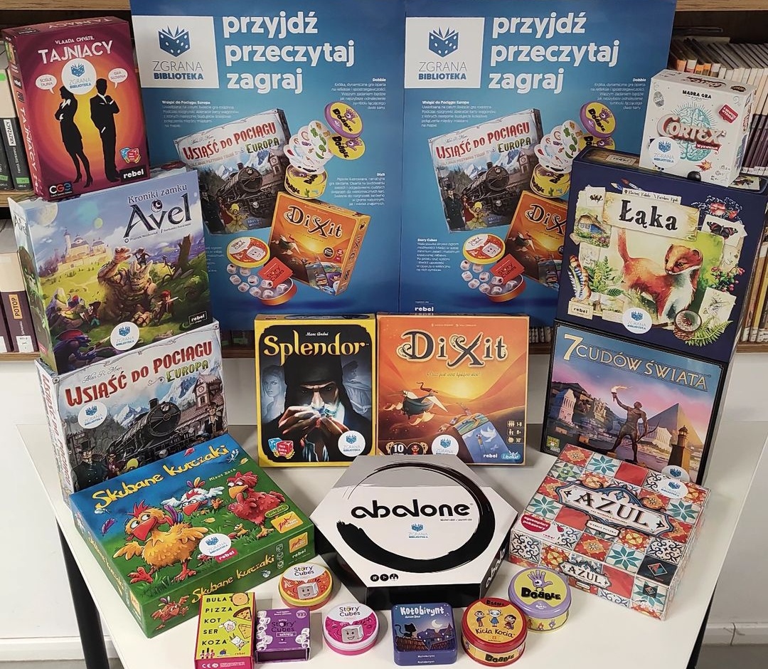 GRY PLANSZOWE - gry planszowe są przede wszystkim wartościowym elementem zabaw edukacyjnych i przynoszą wiele korzyści. W naszej bibliotece dostępne są przeróżne gry planszowe. Korzystanie z gier jest bezpłatne i możliwe w godzinach otwarcia biblioteki, można je także wypożyczyć do domu, dzięki współpracy z Wydawnictwem Rebel.pl przy projekcie "Zgrana biblioteka".
