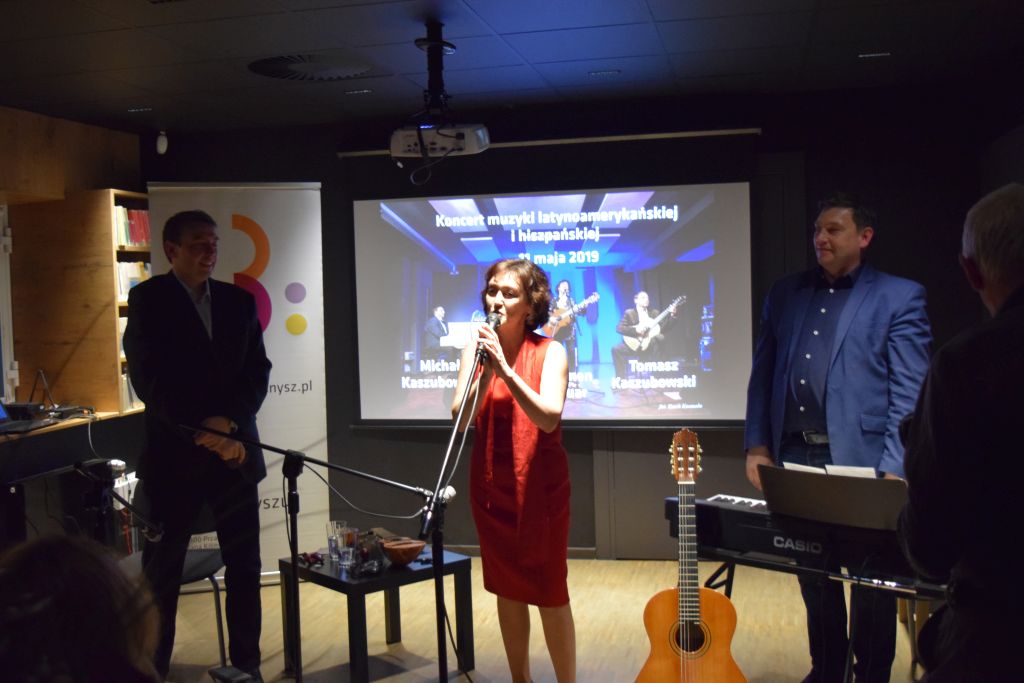 W sobotę 11 maja w siedzibie MBP odbył się koncert muzyki latynoamerykańskiej i hiszpańskiej w wykonaniu Carmen Azuar, Tomasza Kaszubowskiego oraz Michała Kaszubowskiego.