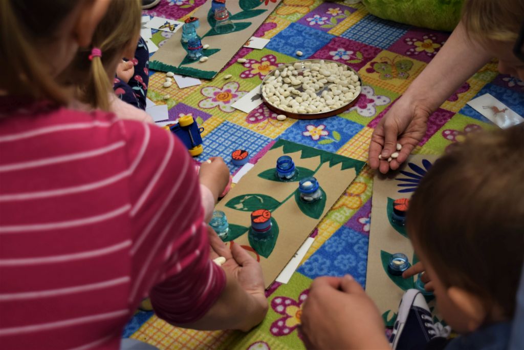 Dzieci po raz kolejny ćwiczyły swoje zdolności manualne podczas przykręcania biedronek z korków, a także podczas przesypywana do nich fasoli. Kolejnym zadaniem, z którym nasi najmłodsi czytelnicy poradzili sobie świetnie było dopasowanie oczu, ust i nosa do przygotowanej buźki oraz układanie kolorowych kulek na patyczkach. Największą radość sprawiło maluszkom słuchanie odgłosów różnych zwierząt i dopasowywanie do nich zdjęć. Zabawom nie było końca! W ostatniej części naszych zajęć przeglądaliśmy zakupione nowości książkowe dla najmłodszych, a każdy z nich mógł wybrać coś dla siebie.