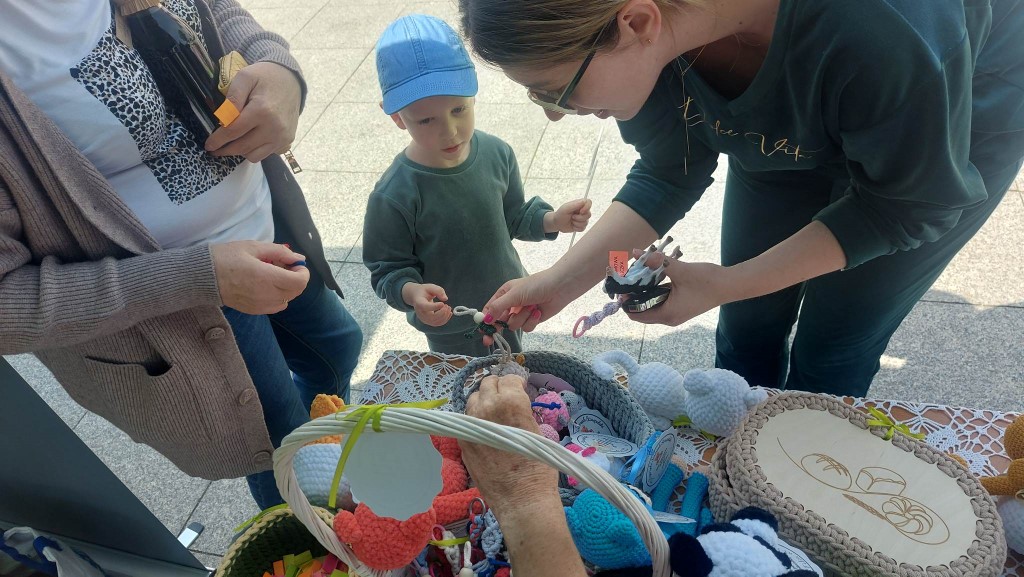 1Kolejne warsztaty w Klubie Rękodzieła "Biblioteka pod szpileczką" za nami! Maj rozpoczęliśmy od wspólnego wyplatania biało-czerwonej flagi, która następnie została wystawiona na licytację, aby wesprzeć zbiórkę środków na zakup windy dla Rafała Olszewskiego z Przasnysza.  Podczas czterech, cotygodniowych spotkań powstało także bardzo wiele kolorowych breloków i makramowych laleczek, które można było wylosować w loterii na IX Przasnyskim Jarmarku Staropolskim. Mieszkańcy Przasnysza i przybyli goście mieli okazję zobaczyć na własne oczy piękne wytwory rąk zdolnych członkiń Klubu.