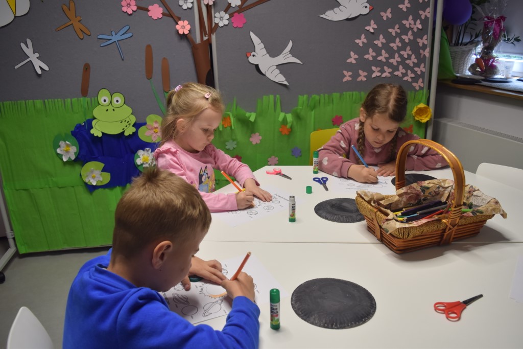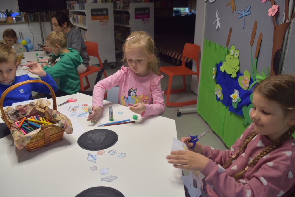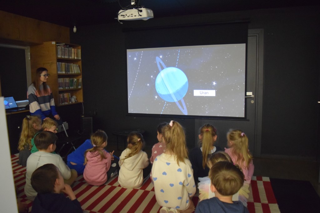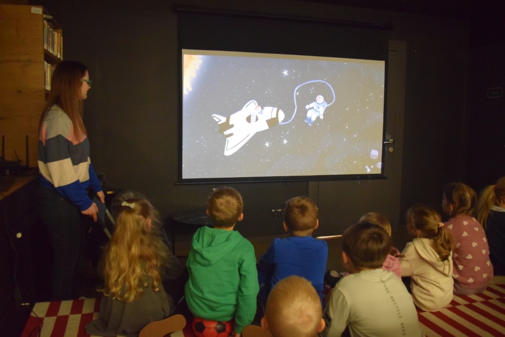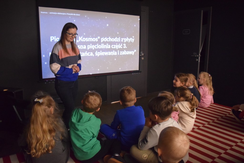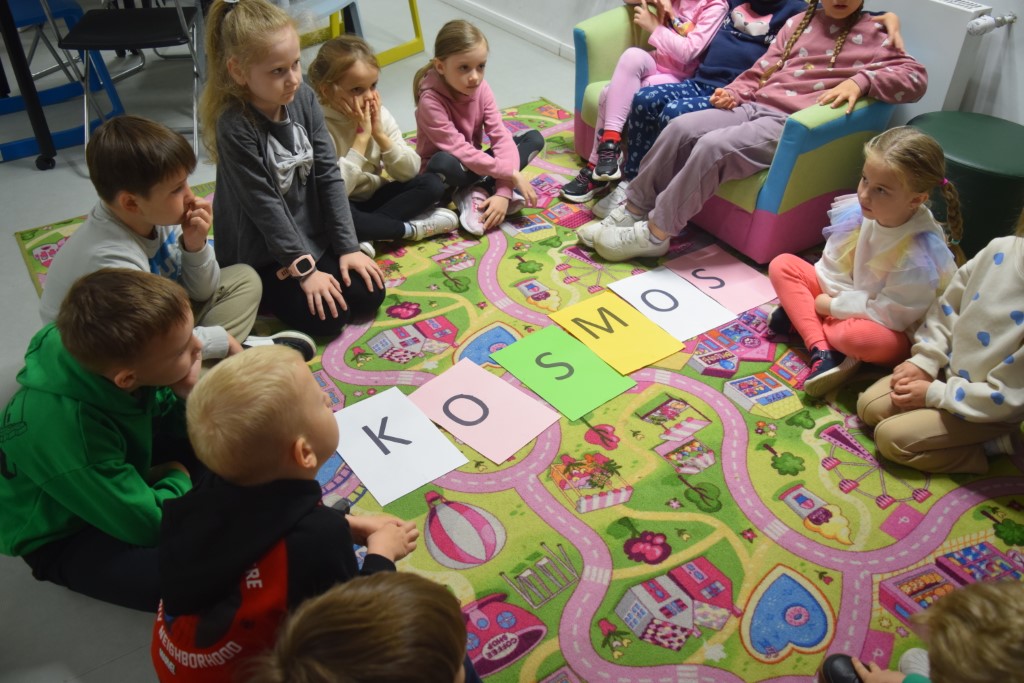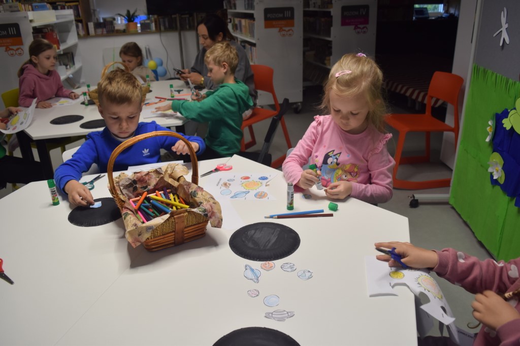 Tym razem dzieci poznawały Układ Słoneczny. Wprowadzeniem do zajęć była krótka rozmowa z dziećmi na temat ich wiedzy o kosmosie. Następnie uczestnicy obejrzeli przygotowaną prezentację o kosmosie. Dzieci poznały planety układu słonecznego tj. Merkury, Wenus, Ziemię, Mars, Jowisz, Saturn, Uran i Neptun. Na dzieci czekała wspaniała niespodzianka w postaci projektora gwiazd. Na zakończenie wykonały pracę plastyczną - makietę kosmosu z użyciem talerzyka papierowego
