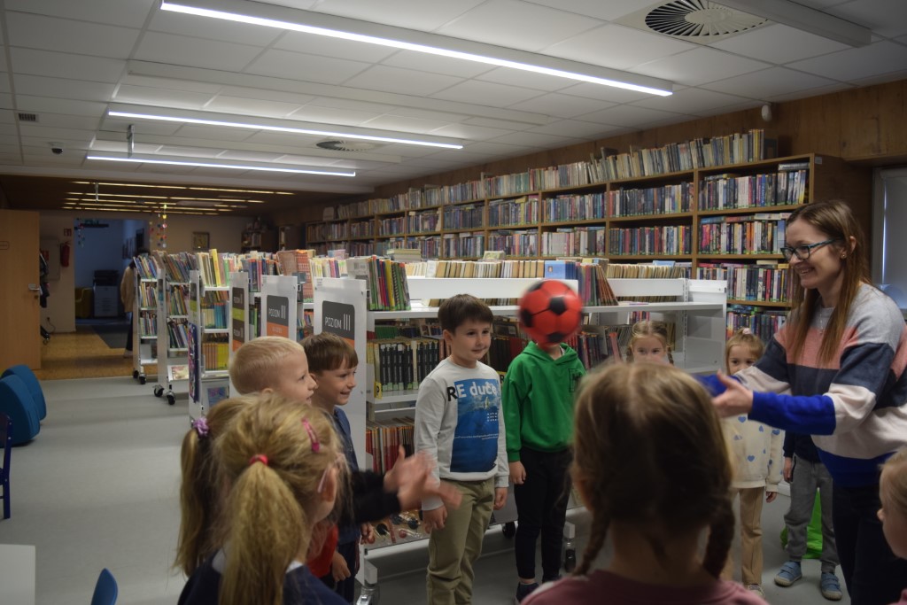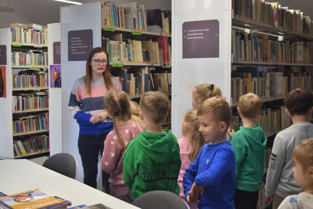 Zajęcia rozpoczęliśmy od zwiedzania pomieszczeń biblioteki. Dzieci dowiedziały się jak zostać naszym czytelnikiem oraz jak wziąć udział w akcji "Mała książka - wielki człowiek’" i otrzymać Wyprawkę Czytelniczą.