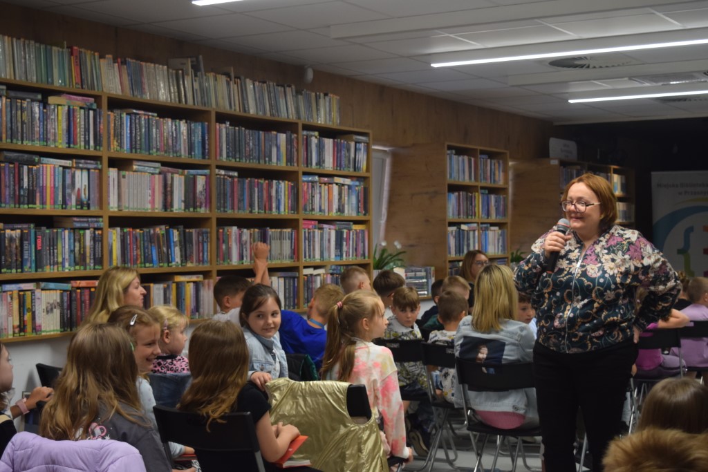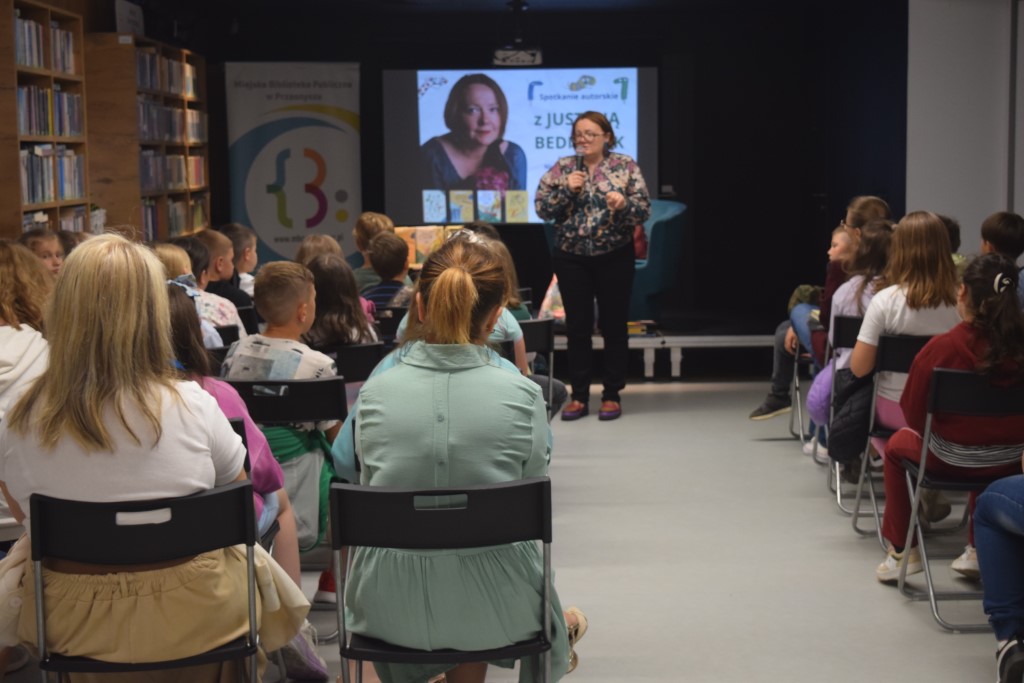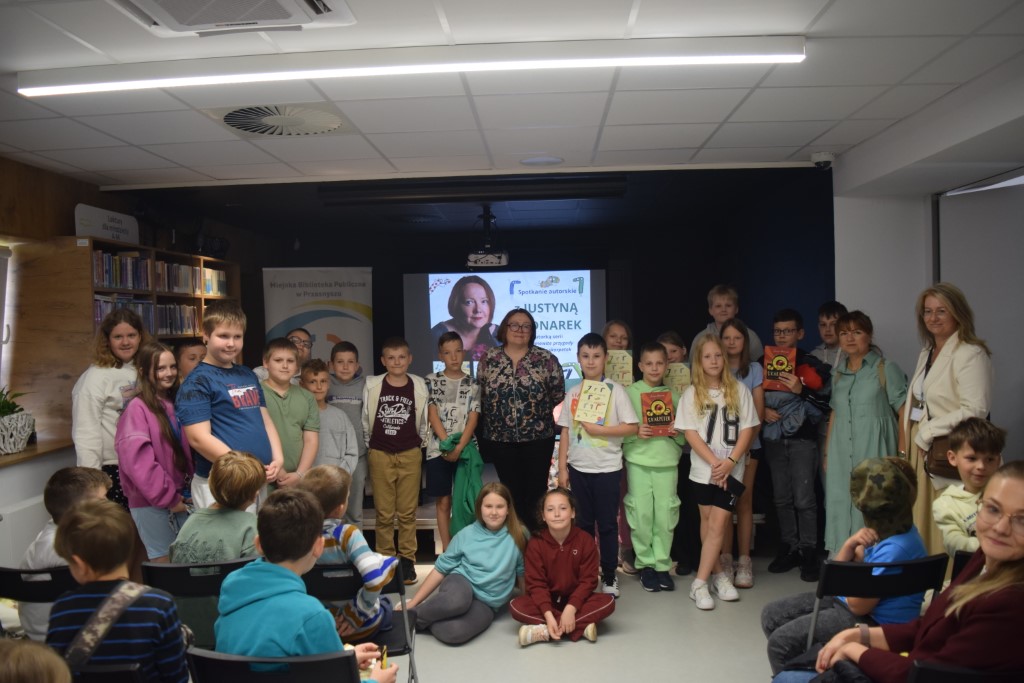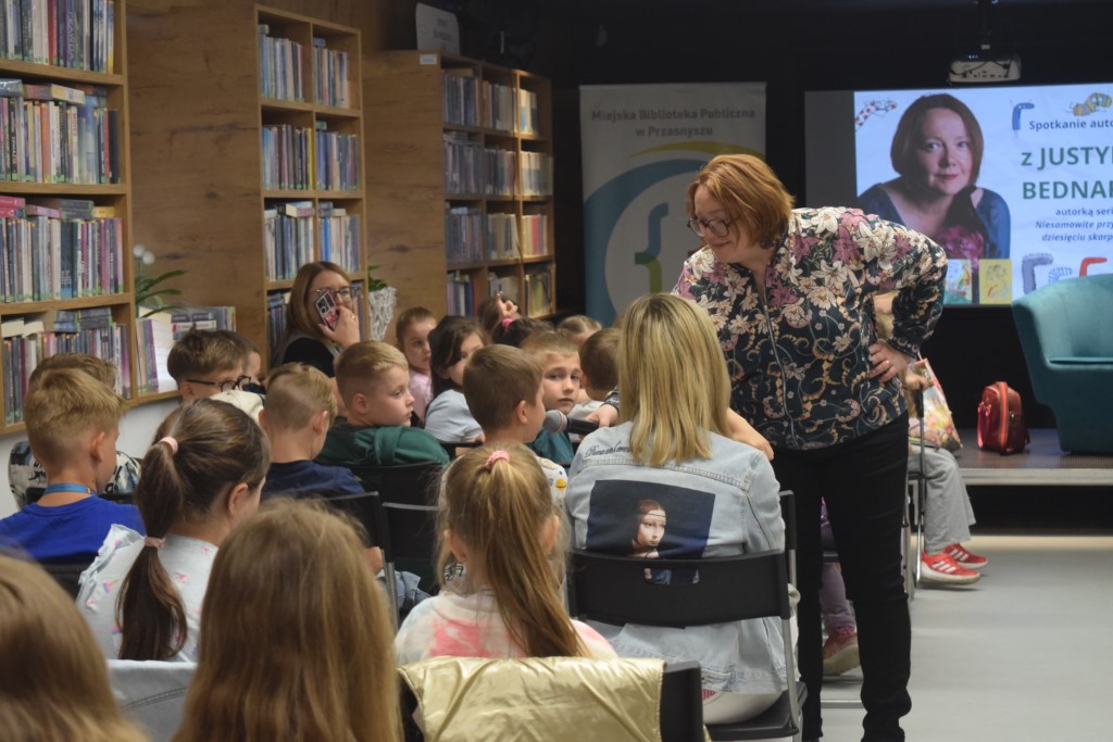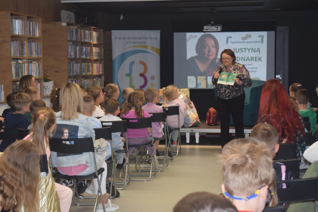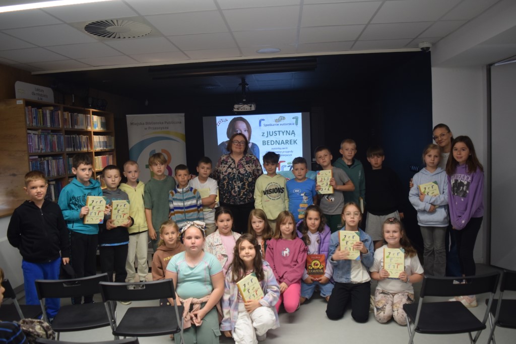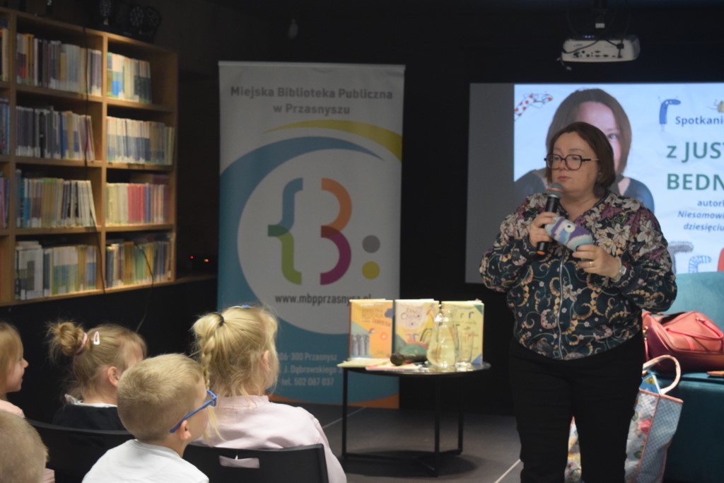 Uczniowie klas I–III ze Szkół Podstawowych Nr 1 i Nr 3 mieli niecodzienną okazję uczestniczyć w spotkaniu autorskim z Justyną Bednarek – znaną i cenioną pisarką książek dla dzieci, a przede wszystkim autorką uwielbianych przez młodych czytelników "Niesamowitych przygód dziesięciu skarpetek".