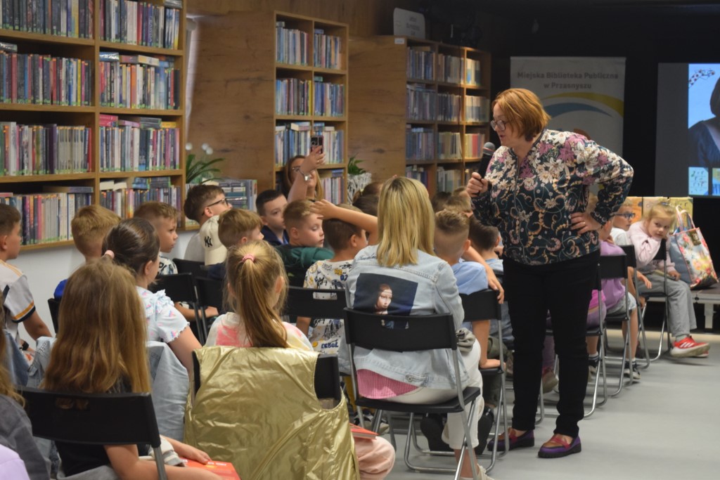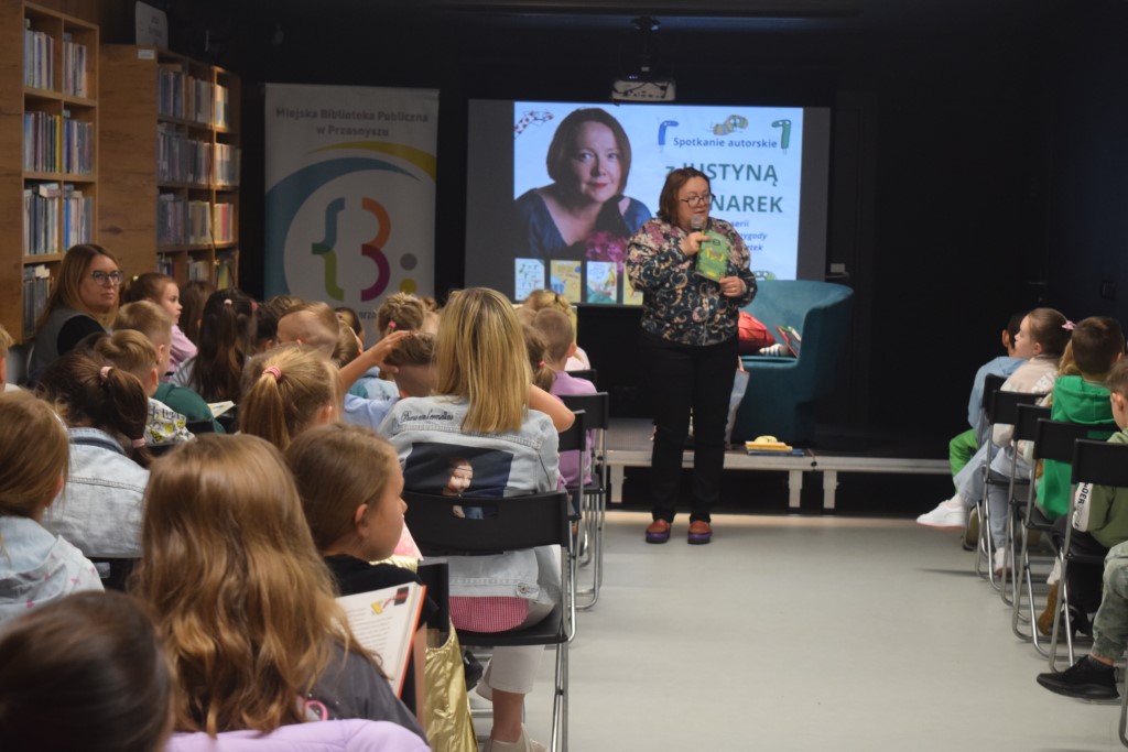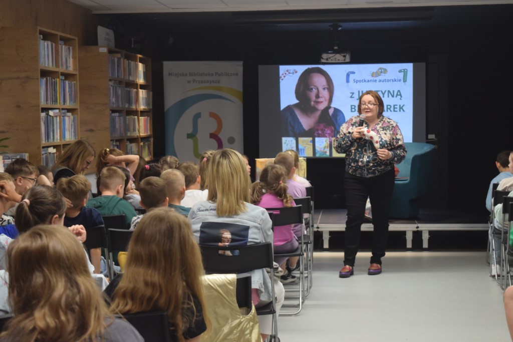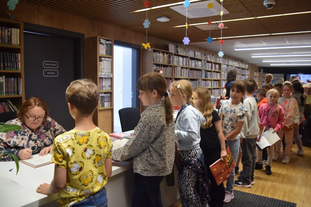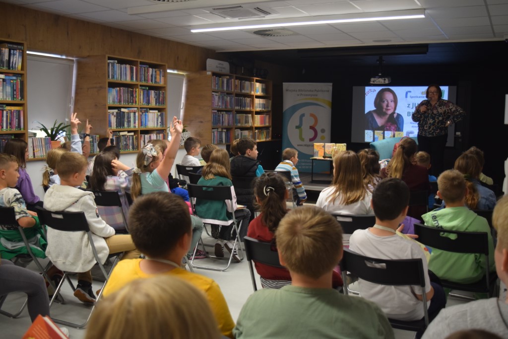 Autorka chętnie odpowiadała na pytania uczniów – a tych nie brakowało! Dzieci pytały zarówno o losy bohaterów książki, jak i o pracę pisarki, inspiracje i codzienność związaną z tworzeniem literatury.