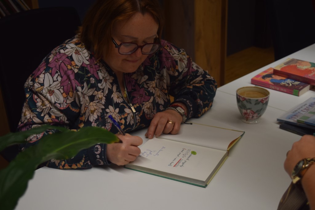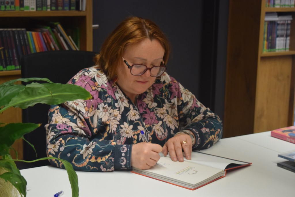 Na zakończenie spotkania pani Justyna rozdawała autografy i z uśmiechem pozowała do wspólnych zdjęć. Wielu uczniów miało przy sobie własne egzemplarze książki, które teraz zyskały wyjątkową dedykację.