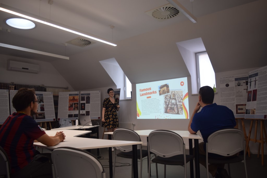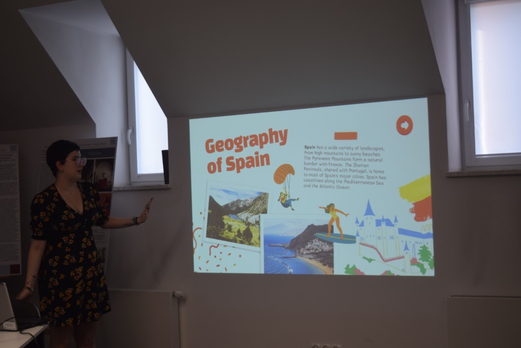 W czwartek 19. września odbyła się pierwsza po wakacyjnej przerwie Kawiarenka Językowa z udziałem dwójki naszych nowych wolontariuszek z zagranicy. Obecnie goszczą u nas Magdalena z Hiszpanii oraz Mariam z Gruzji; pierwsza z nich zainaugurowała wczoraj cykl naszych spotkań wprowadzającą prezentacją na temat siebie i swoich zainteresowań, swojej iberyjskiej ojczyzny i wielu ciekawych faktów z nią związanych. Już teraz zapraszamy na kolejną, październikową odsłonę Kawiarenki, podczas której będziemy mieli okazję poznać bliżej Gruzję.