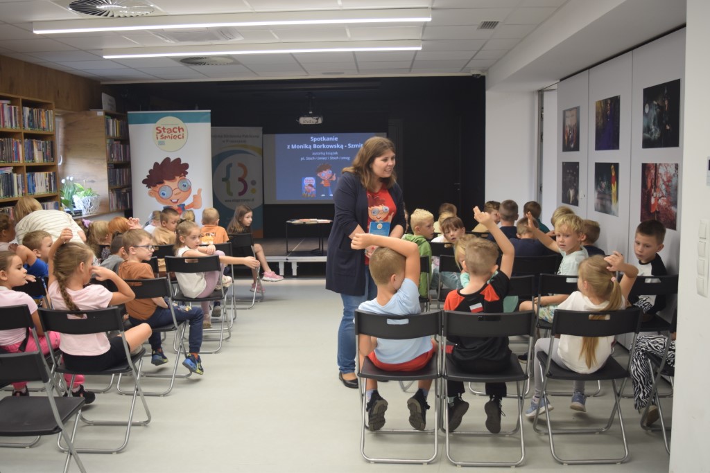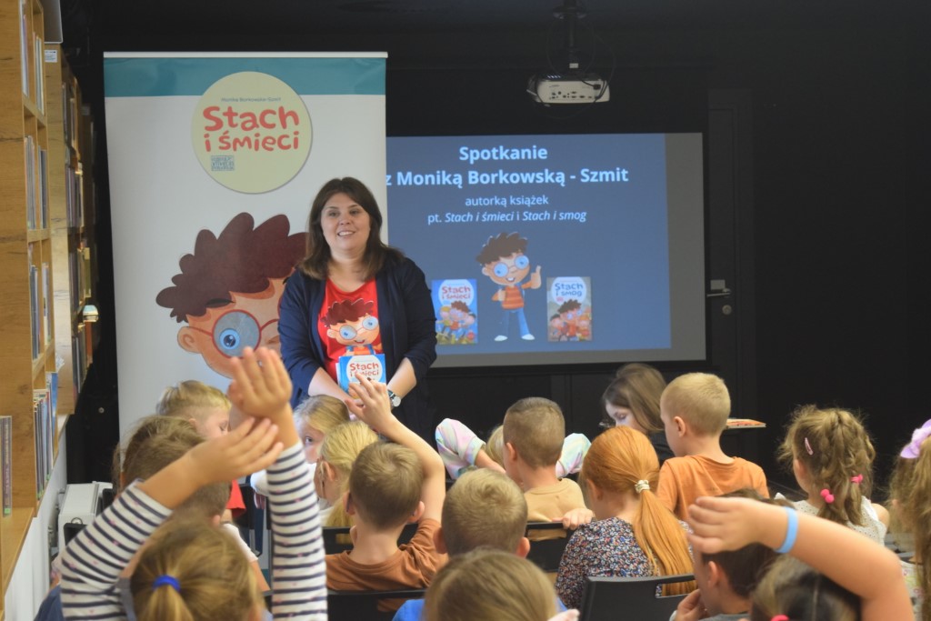 Dzisiejszego dnia gościliśmy w Miejskiej Bibliotece w Przasnyszu panią Monikę Borkowską-Szmit, autorkę książek dla dzieci „Stach i śmieci” oraz „Stach i smog”. W spotkaniu uczestniczyli uczniowie klas 1 ze Szkoły Podstawowej nr 2 w Przasnyszu. Spotkanie rozpoczęło się od prezentacji książek, które przywiozła ze sobą autorka.
